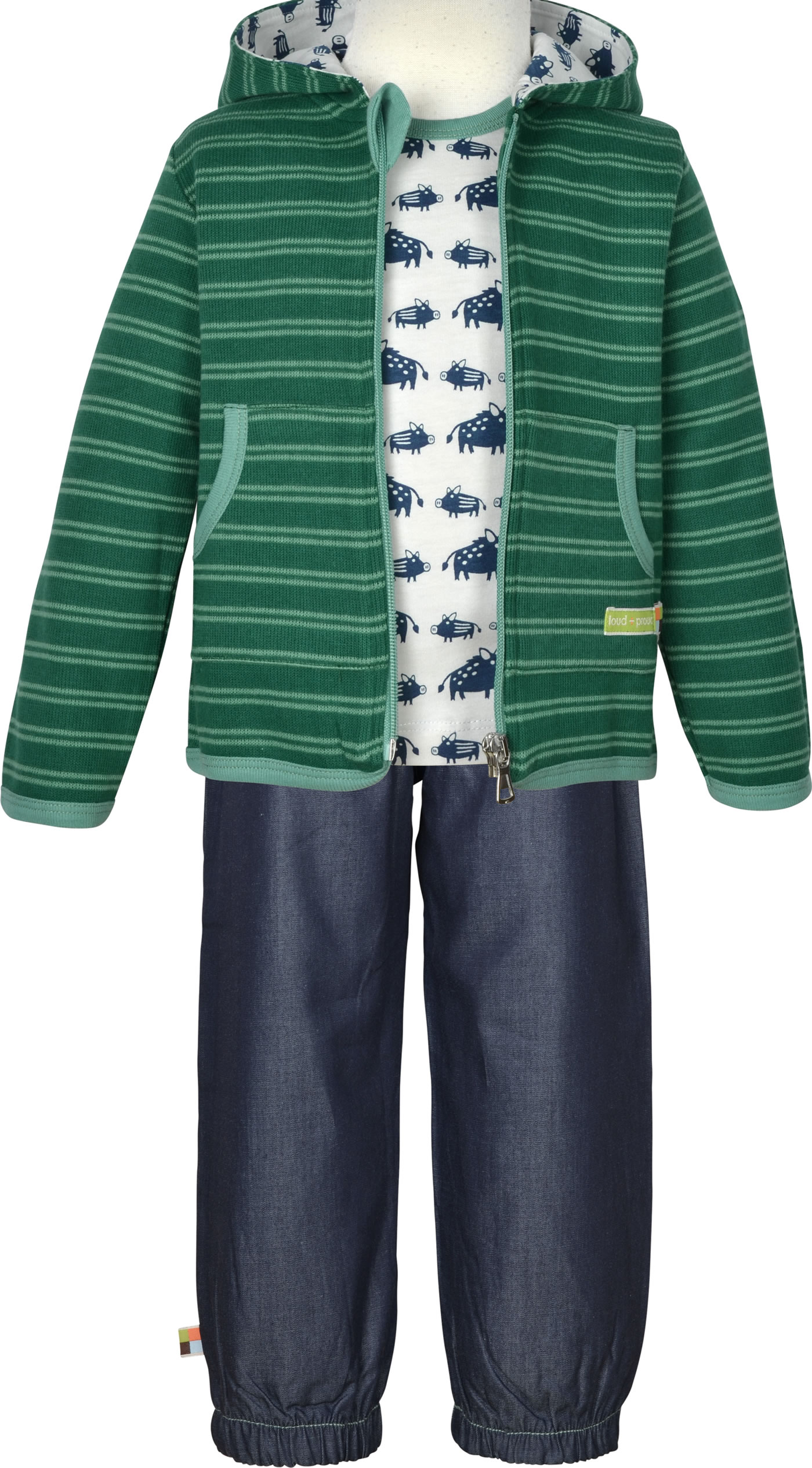 Kombinationsempfehlung: Auf dem Detailbild zusammen mit den Artikeln loud + proud T-Shirt Langarm Allover WALDTIRERE ultramarin 1075-ul GOTS Ultramarin (Lo00001075ult) und loud + proud Sweat-Jacke Ringel WALDTIERE ivy 3090-ivy GOTS Ivy (Lo00003090ivy).