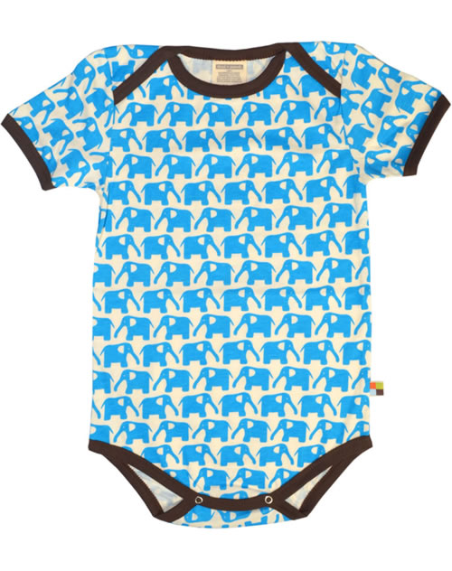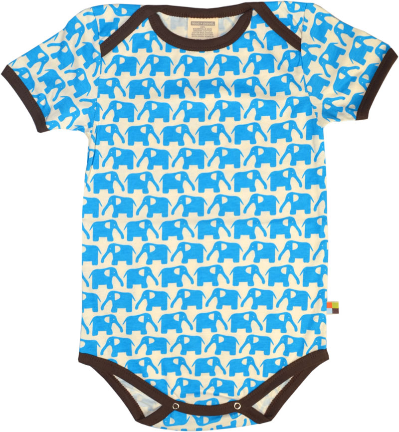 loud+proud Kurzarm-Body BASIC Elefanten aqua/braun