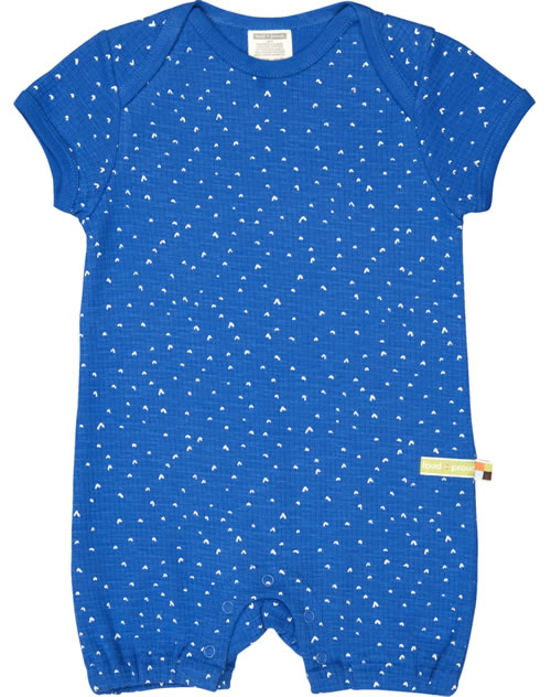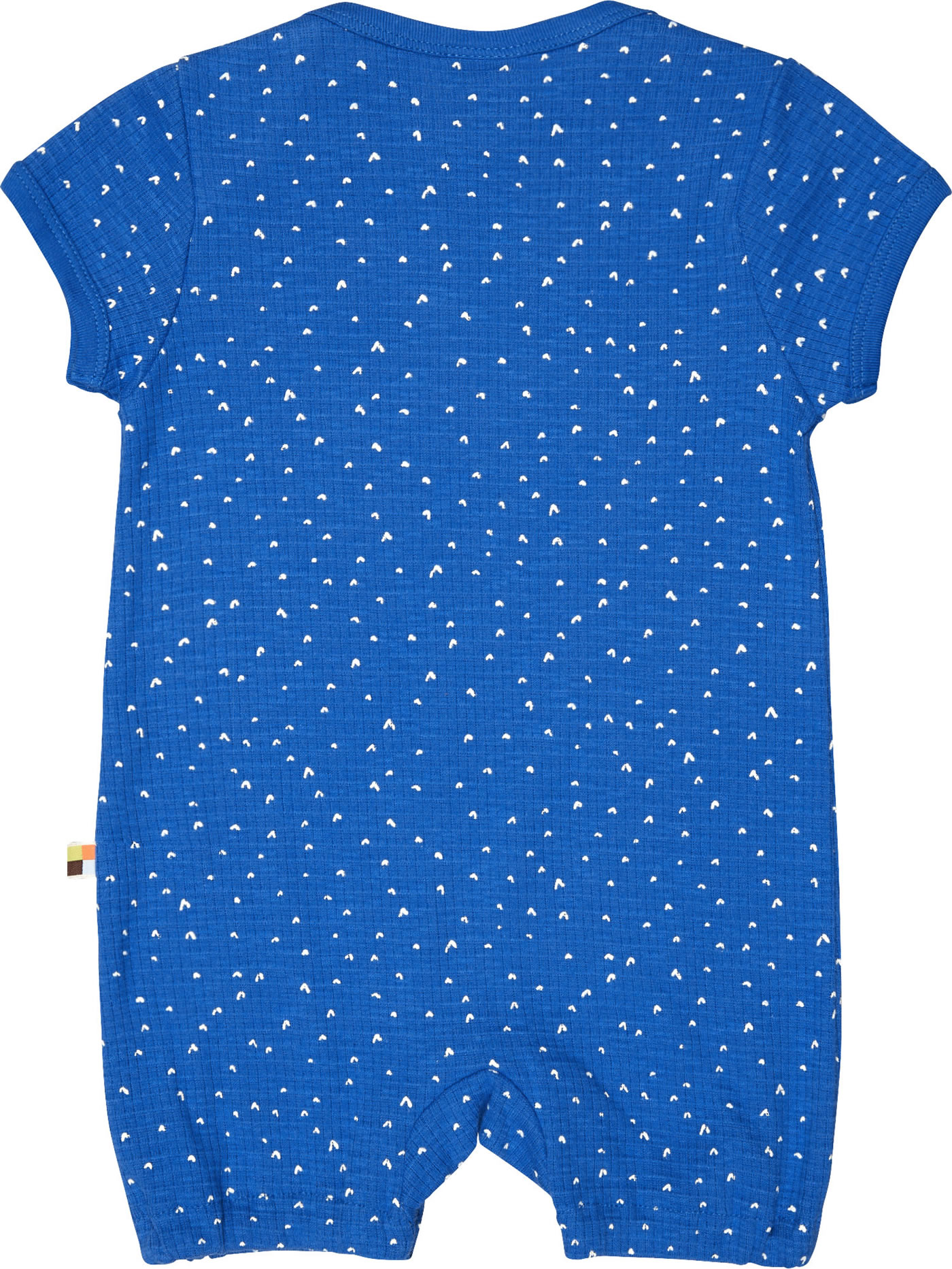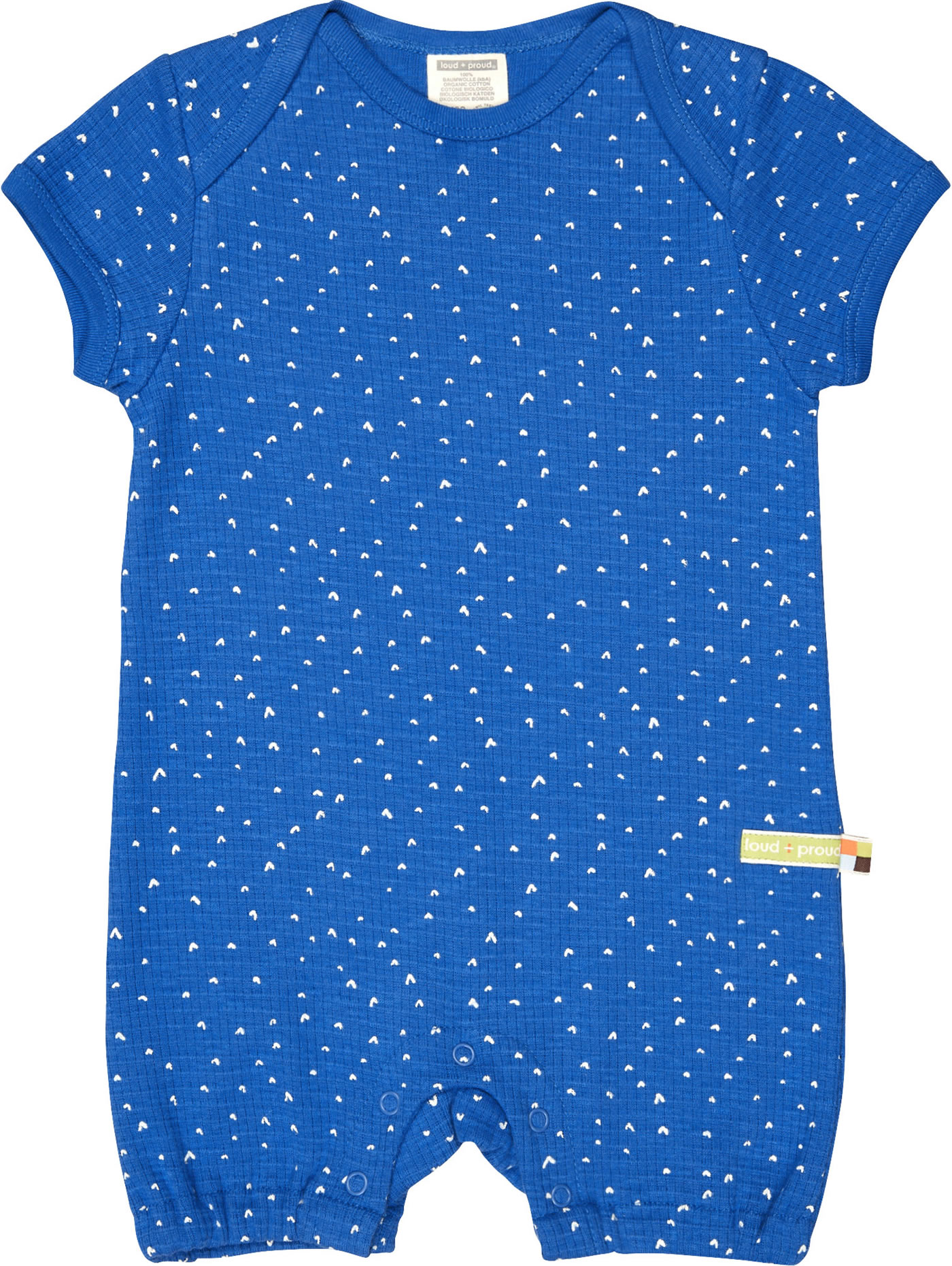 Bequemer Kurz-Strampler von LOUD + PROUD mit Waffelstruktur und Streumuster in cobalt. Der Strampler ist aus angenehm weicher Baumwolle und ideal für warme Sommertage. Mit großer Knopfleiste im Schritt und Schlupfausschnitt.