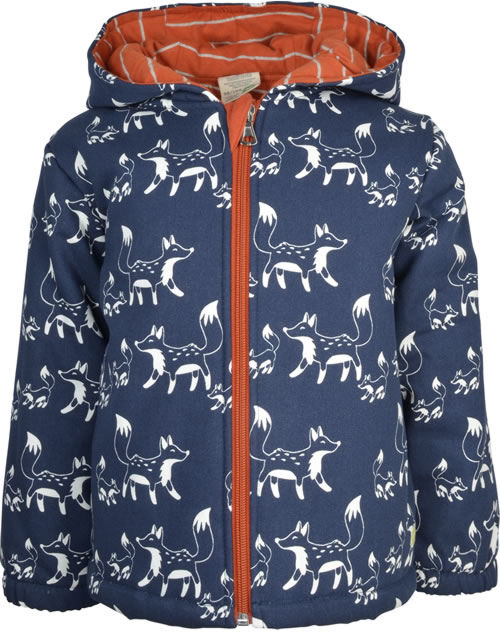 Wattierte Outdoor-Jacke von LOUD + PROUD. Die Füchse und das gestreifte Jersey-Futter machen diese Jacke zu einem echten Blickfang. Die atmungsaktive BIONIC-FINISH ECO-Imprägnierung ist fluorfrei und macht sie wasser- und schmutzabweisend. Die Jacke ist besonders leicht und das Material sorgt für einen hohen Tragekomfort. Der Reißverschluss ist mit einem Kinnschutz ausgestattet.