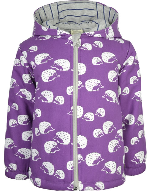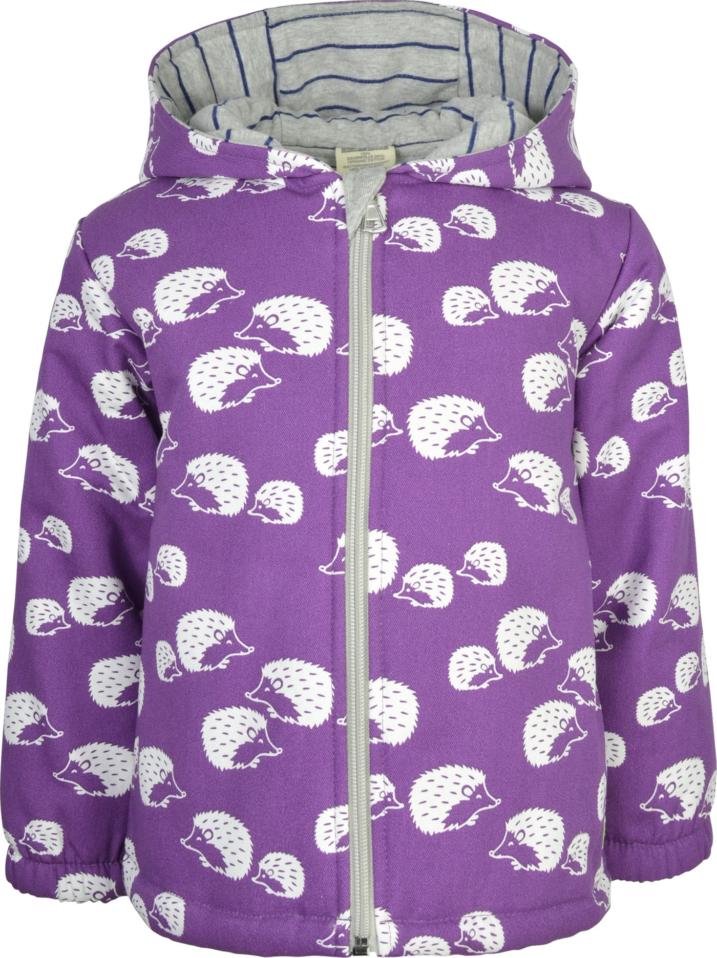 Wattierte Outdoor-Jacke von LOUD + PROUD. Die Igel und das gestreifte Jersey-Futter machen diese Jacke zu einem echten Blickfang. Die atmungsaktive BIONIC-FINISH ECO-Imprägnierung ist fluorfrei und macht sie wasser- und schmutzabweisend. Die Jacke ist besonders leicht und das Material sorgt für einen hohen Tragekomfort. Der Reißverschluss ist mit einem Kinnschutz ausgestattet.