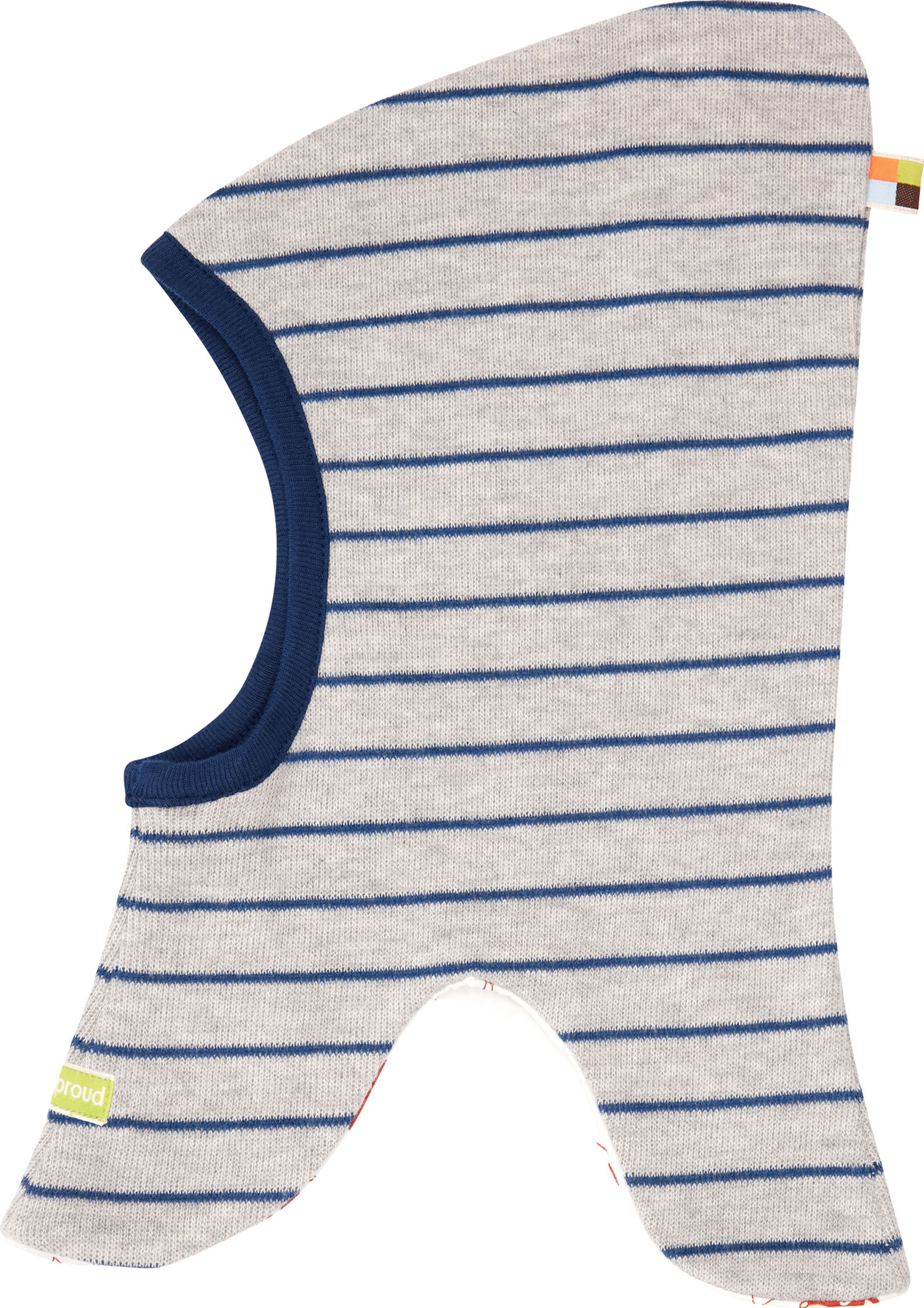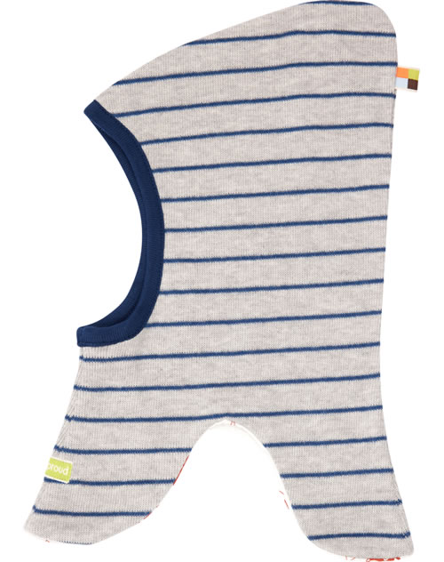 Tolle Schlupfmütze zum Wenden aus Baumwolle von LOUD + PROUD. Eine Seite ist aus bedrucktem Jersey, die andere Seite aus geringeltem Interlock mit geschmirgelter Oberfläche gefertigt. Die praktische Schlupfmütze hält an kalten Tagen schön warm, da sie Kopf, Hals und Ohren gleichermaßen wärmt.