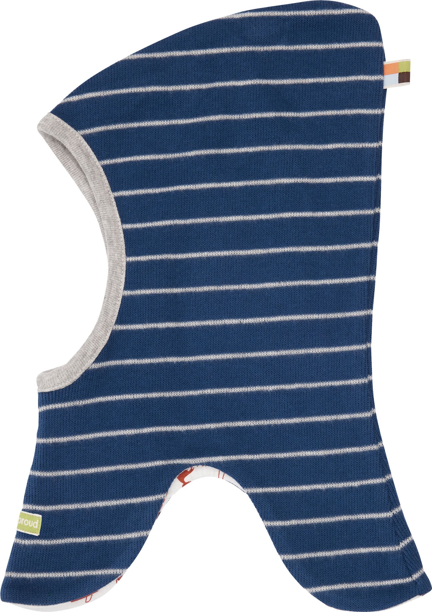 Tolle Schlupfmütze zum Wenden aus Baumwolle von LOUD + PROUD. Eine Seite ist aus bedrucktem Jersey, die andere Seite aus geringeltem Interlock mit geschmirgelter Oberfläche gefertigt. Die praktische Schlupfmütze hält an kalten Tagen schön warm, da sie Kopf, Hals und Ohren gleichermaßen wärmt.
