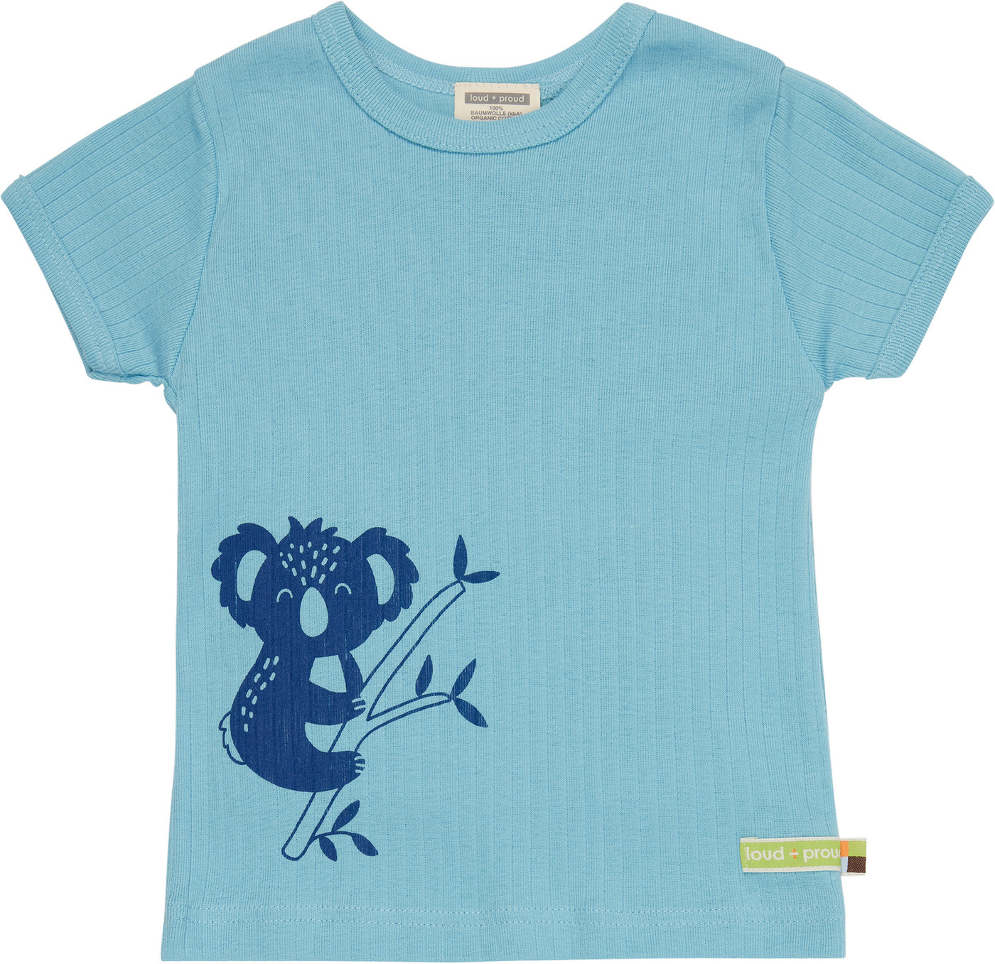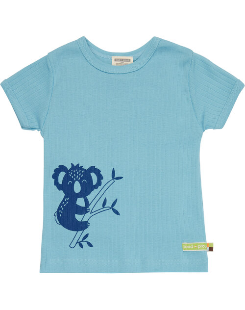 Geripptes Kurzarmshirt von LOUD + PROUD aus angenehm weicher Baumwolle. Ein Hingucker ist der Koala auf der Vorderseite. Bis Größe 86/92 mit Wickelkragen. Mit Logo-Fähnchen an der Seitennaht.