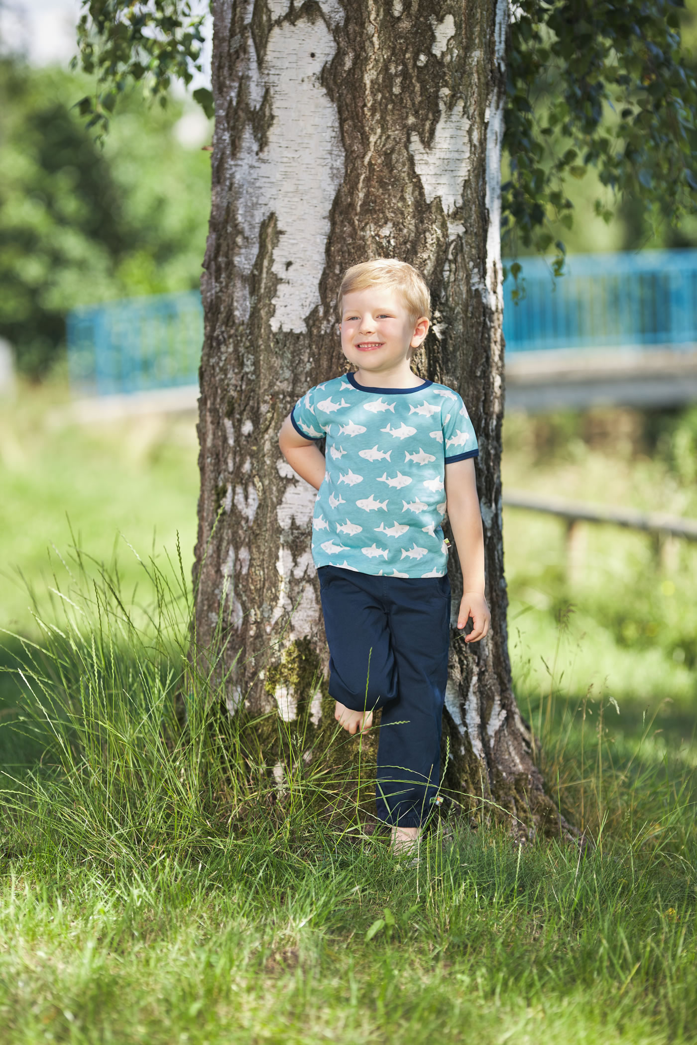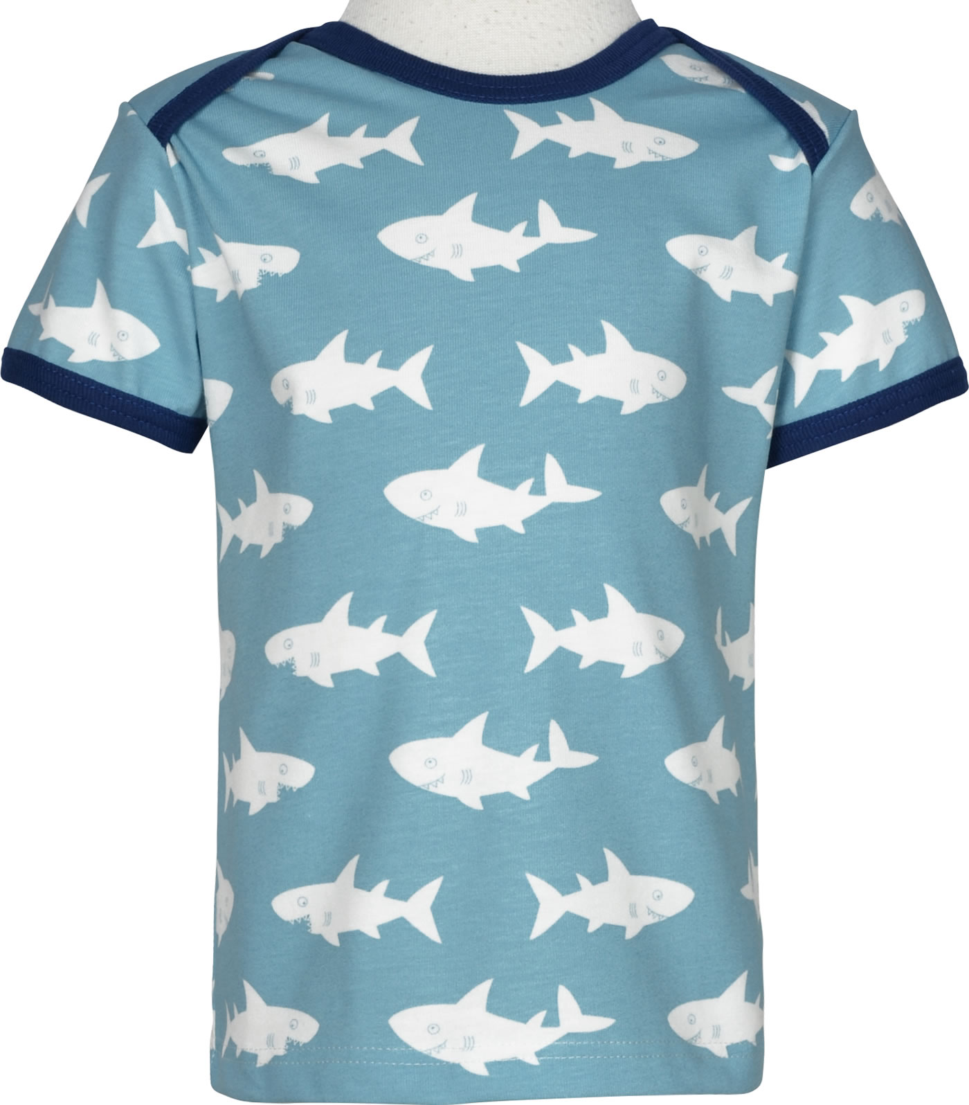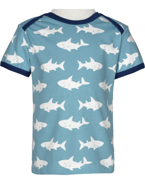 Tolles Kurzarmshirt von LOUD + PROUD aus angenehm weicher Baumwolle. Die Armbündchen und der Kragen schließen mit Kontrastpaspeln ab. Ein Hingucker der Allover-Print mit Haien. Bis Größe 86/92 mit Wickelkragen. Mit Logo-Fähnchen an der Seitennaht.