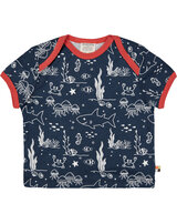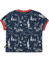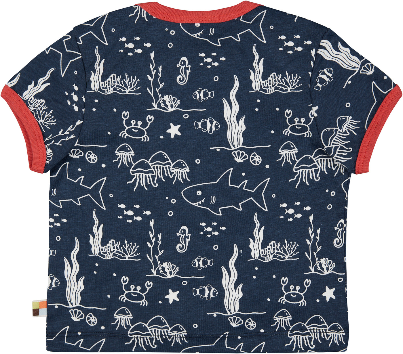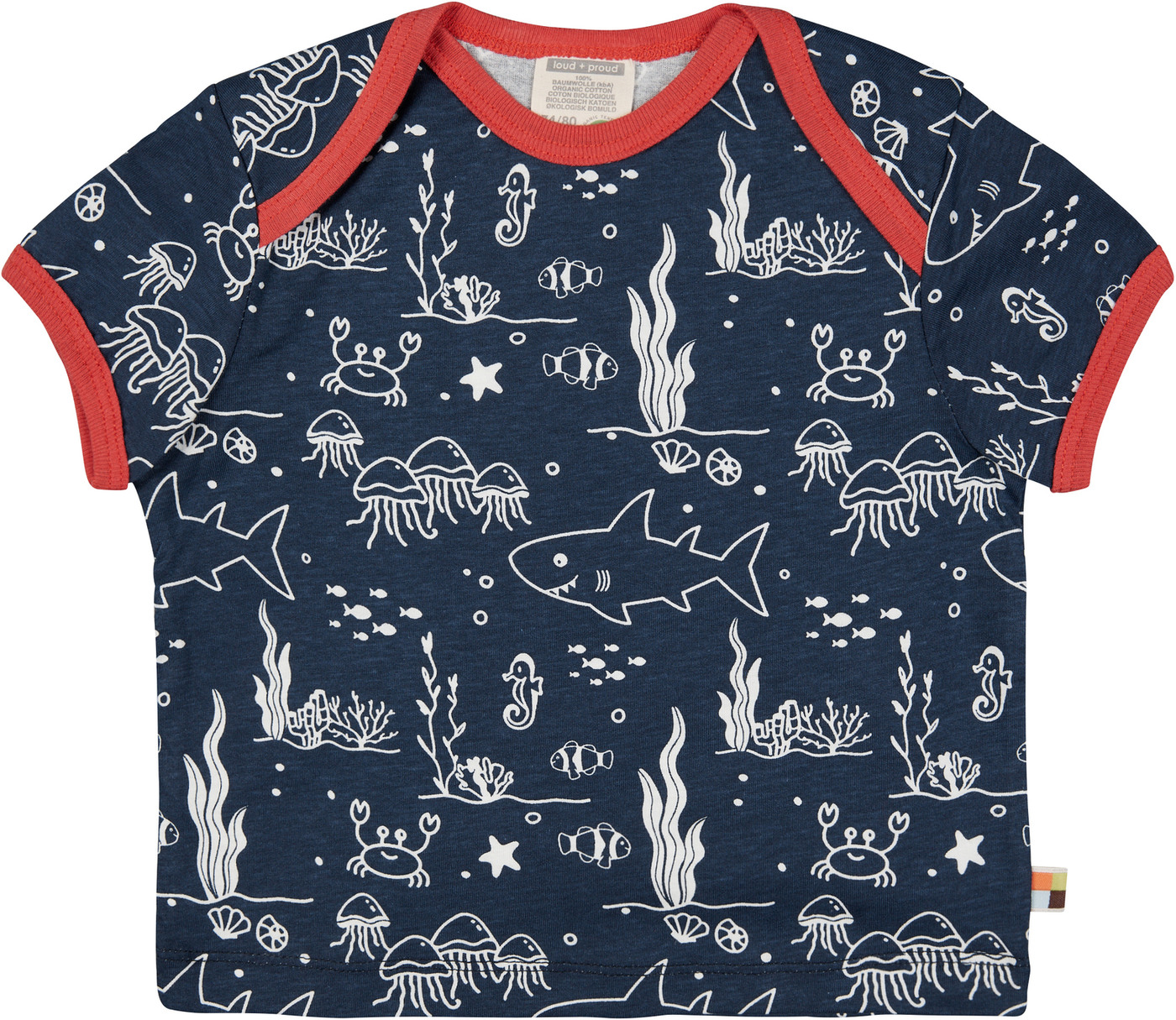 Tolles Kurzarmshirt von LOUD + PROUD aus angenehm weicher Baumwolle. Die Armbündchen und der Kragen schließen mit Kontrastpaspeln ab. Ein Hingucker der Allover-Print mit Meerestieren. Bis Größe 86/92 mit Wickelkragen. Mit Logo-Fähnchen an der Seitennaht.