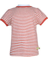 Gestreiftes Kurzarmshirt von LOUD + PROUD aus angenehm weicher Baumwolle und Leinen. Das leichte Material mit dem kühlenden Effekt ist ideal für Sommertage. Bis Größe 86/92 mit Druckknöpfen auf der Schulter. Mit Logo-Fähnchen an der Seitennaht.
