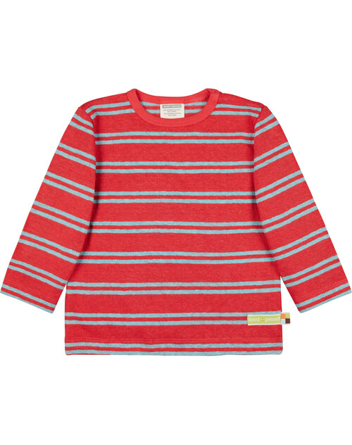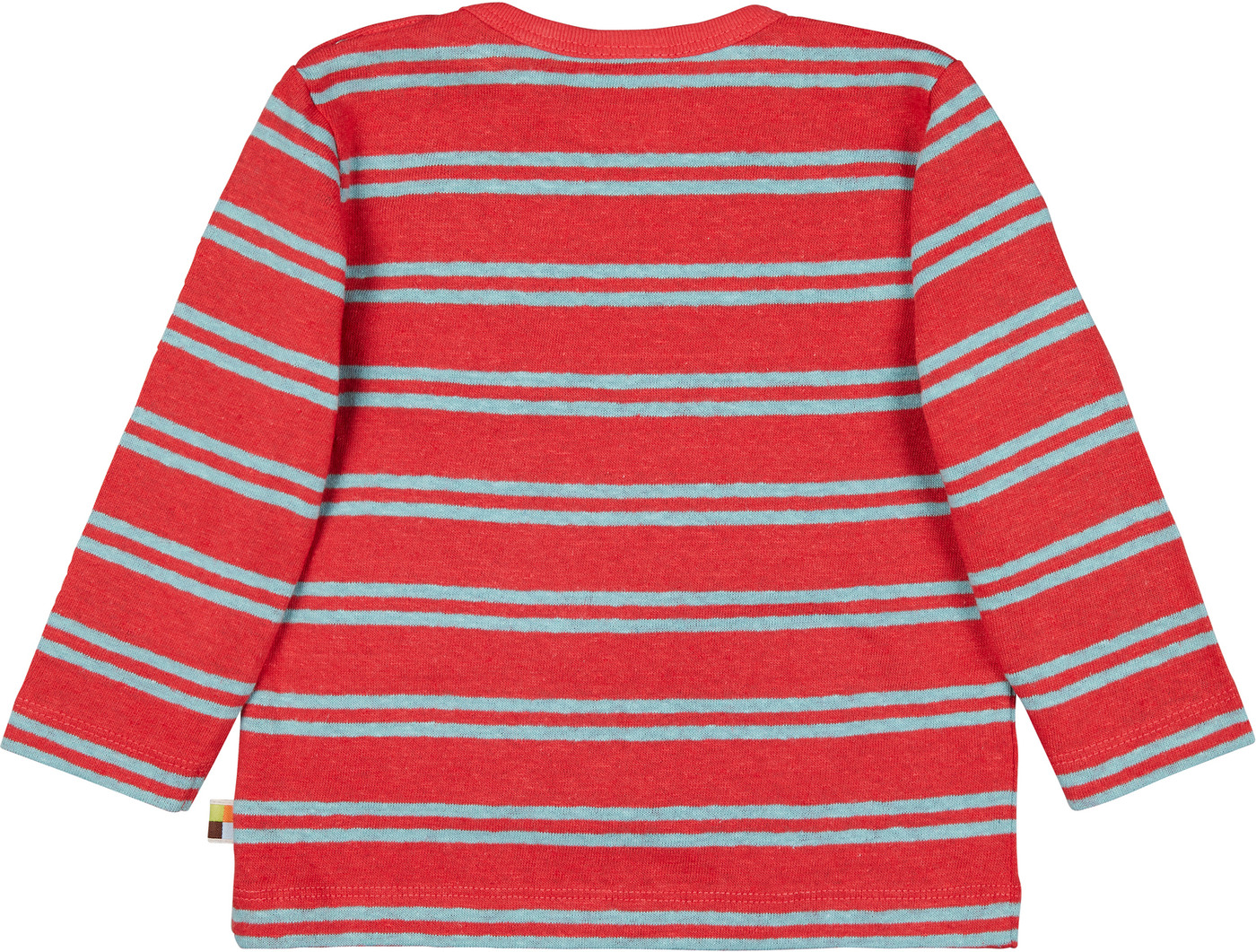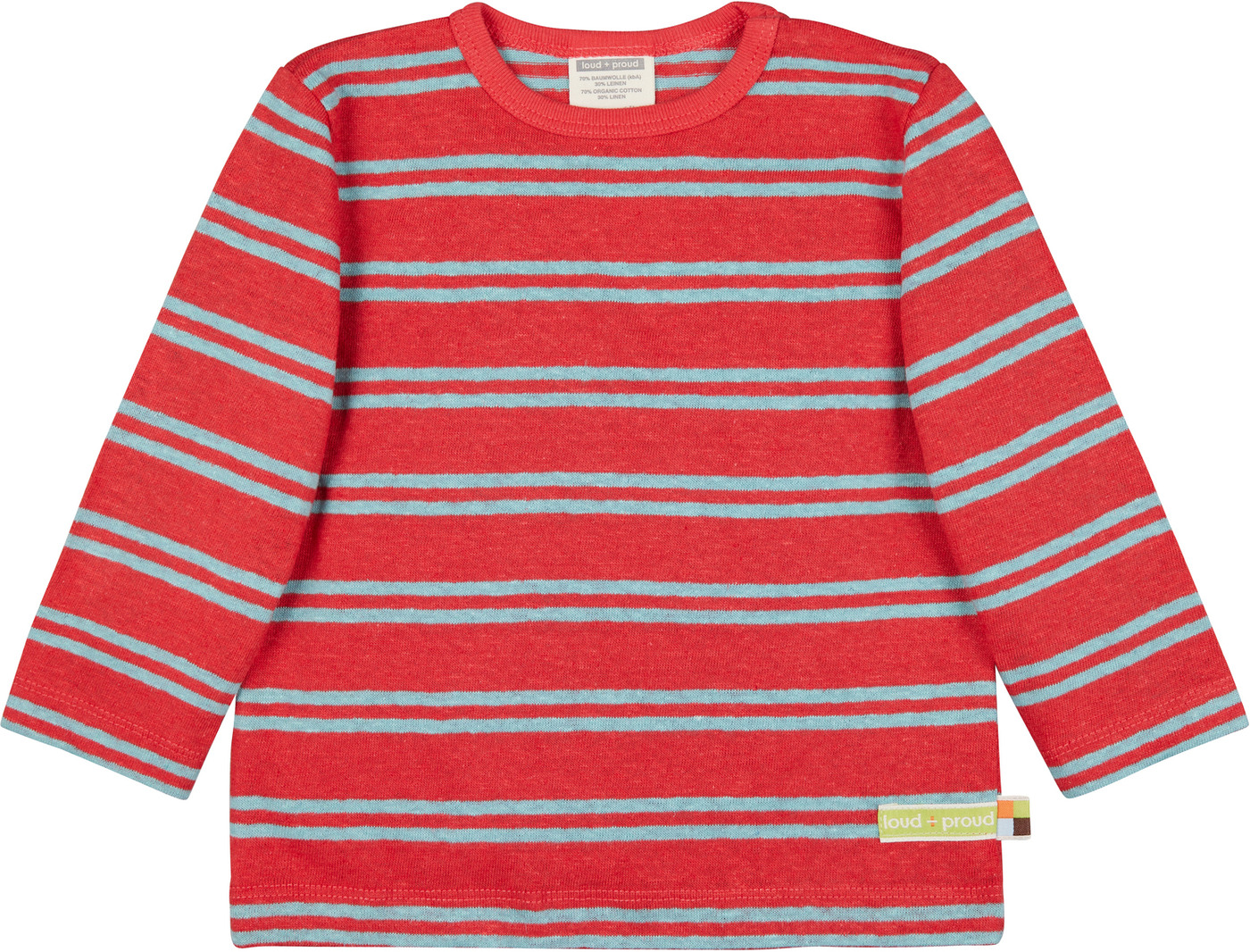 Gestreiftes Langarmshirt von LOUD + PROUD aus angenehm weicher Baumwolle und Leinen. Das leichte Material mit dem kühlenden Effekt ist ideal für Sommertage. Bis Größe 86/92 mit Druckknöpfen auf der Schulter. Mit Logo-Fähnchen an der Seitennaht.