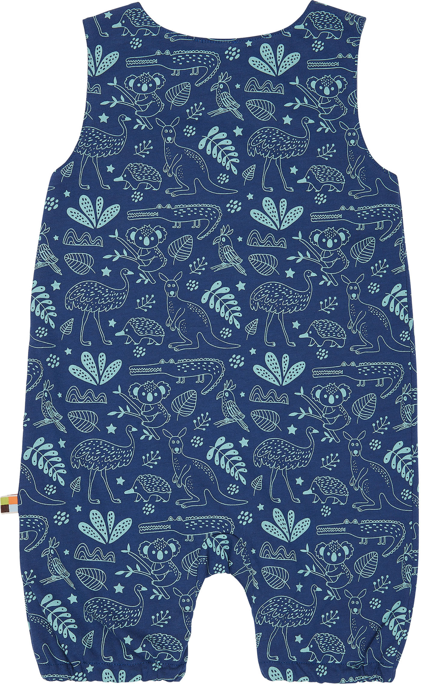 Bequemer Spieler von LOUD + PROUD im Alloverprint mit Motiven aus der Tierwelt Australiens. Der Spieler ist aus angenehm weicher Single Jersey-Baumwolle und ideal für warme Sommertage. An den Schultern mit Knopfverschluss und mit großer Knopfleiste im Schritt.