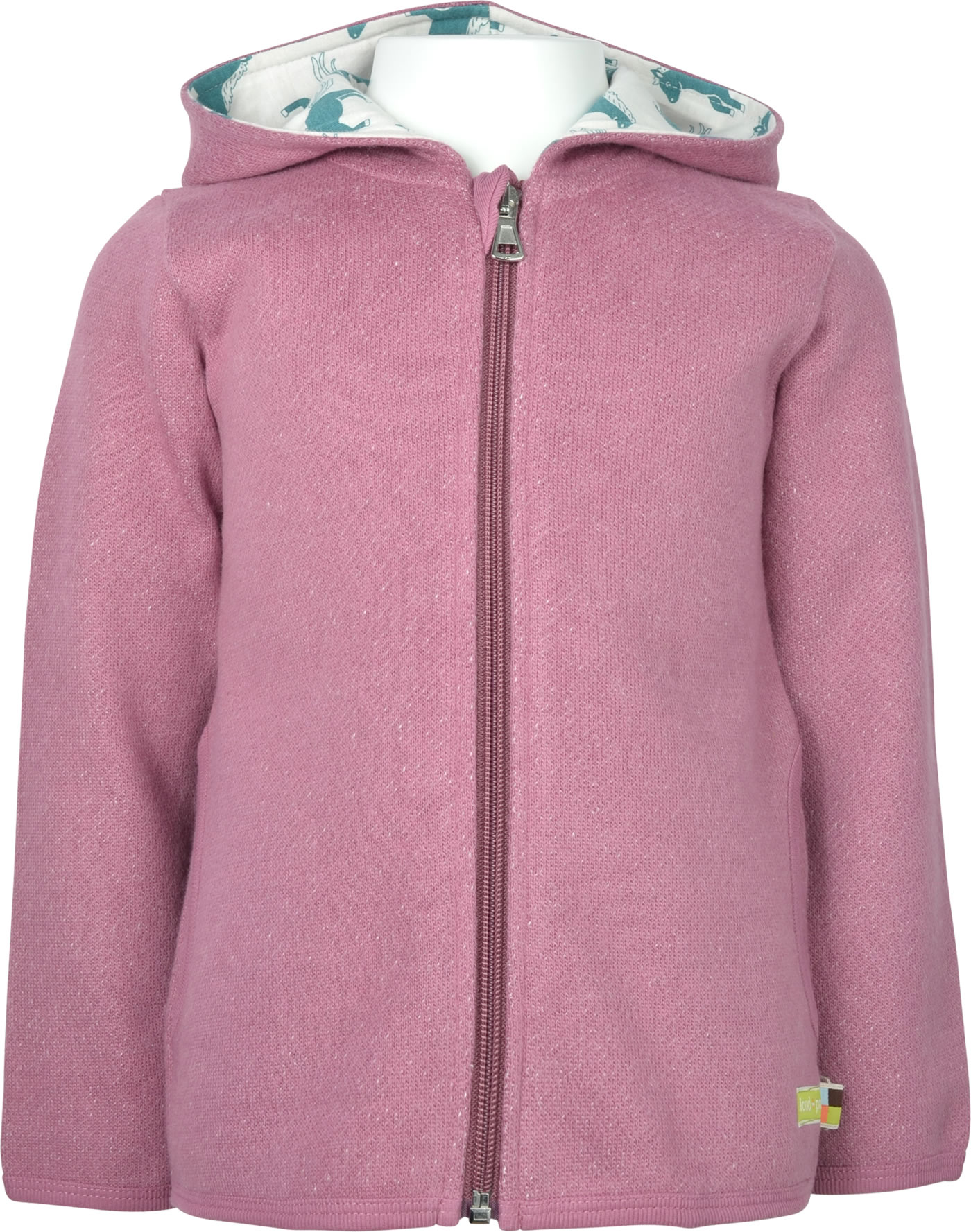 Warme Jacke in Melange-Strick von LOUD + PROUD. Das Kapuzenfutter aus Baumwoll-Jersey hat einen tollen Pferde-Print. Der Reißverschluss besitzt einen Kinnschutz. Auf der Vorderseite befinden sich zwei Taschen. Die Innenseite ist angeraut und hält dadurch schön warm.