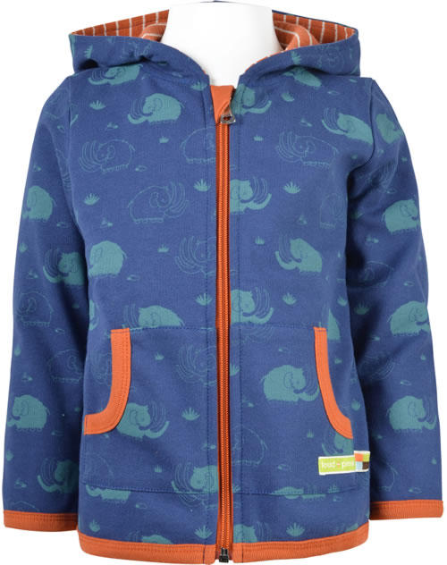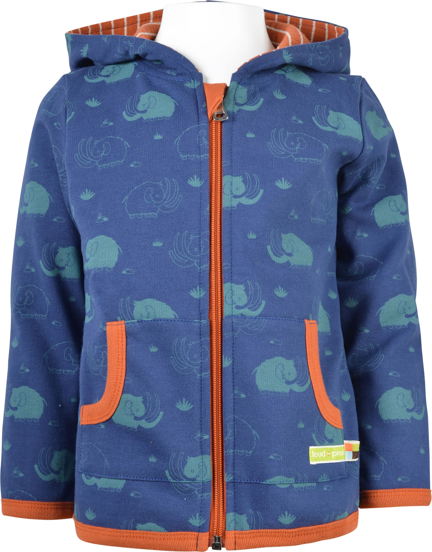 Jacke mit tollem Mammut-Motiv von LOUD + PROUD aus weichem Sweat-Stoff. Das Futter der Kapuze aus Baumwoll-Jersey ist geringelt. Reißverschluss und Pasplen in Kontrastfarbe sind ein toller Blickfang. Die beiden Taschen auf der Vorderseite bieten Platz für kleine Schätze. Die Jacke ist innen weich angeraut und dadurch kuschelig warm.