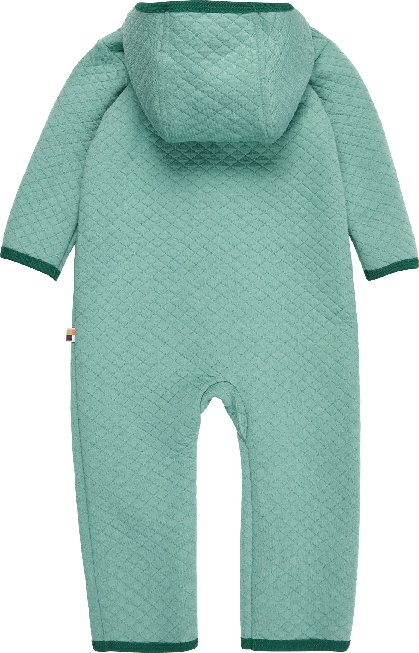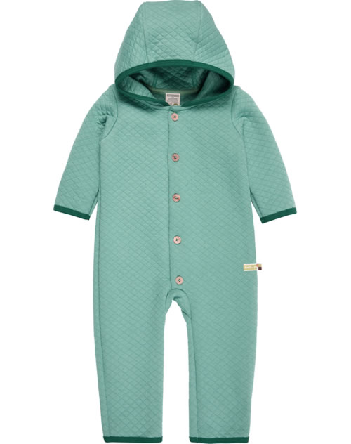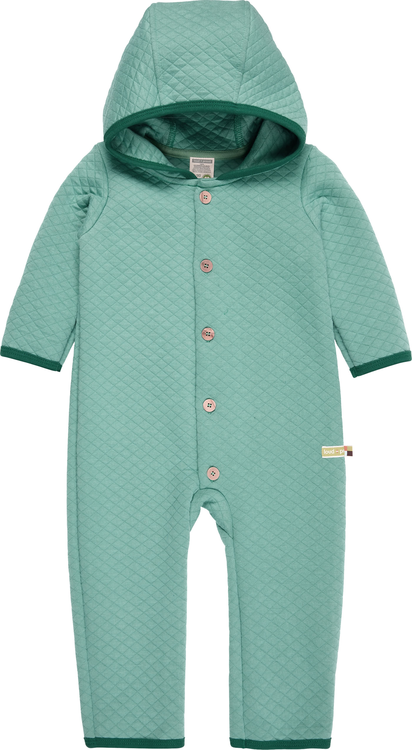 Warmer Sweat-Overall mit Kapuze von LOUD + PROUD in Waffeloptik. Eine Knopfleiste erleichtert das An- und Ausziehen. Besonders schön sind die farblich abgesetzten Paspeln. Der Overall ist ein idealer Begleiter für das Baby an den kühleren Tagen.
