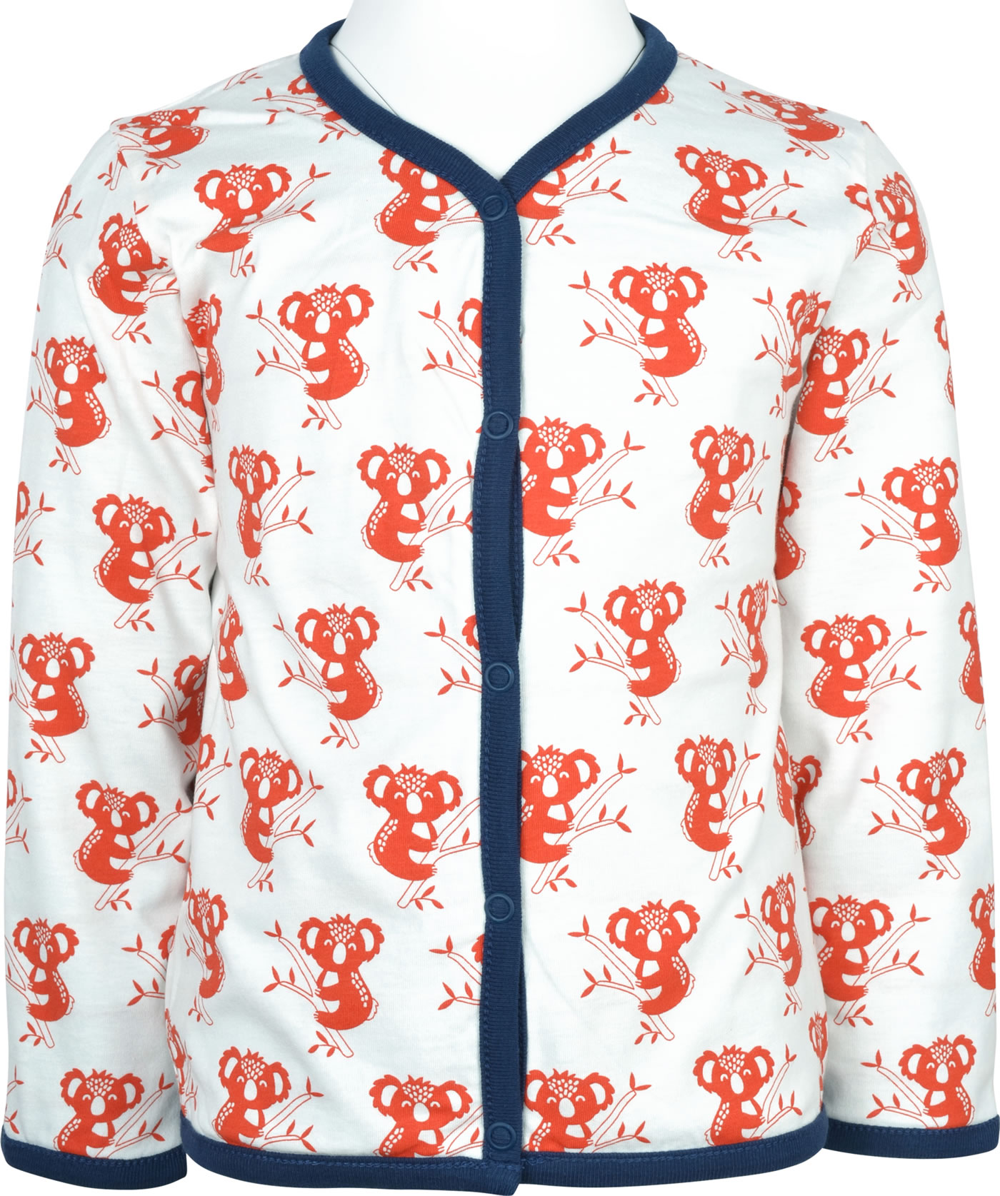 Schöne Sweat-Jacke zum Wenden von LOUD + PROUD. Die doppellagige Jacke kann je nach Lust und Laune mit der geringelten Seite oder der Seite mit den lustigen Koalas getragen werden. Verschlossen wird die Jacke mit Druckknöpfen.