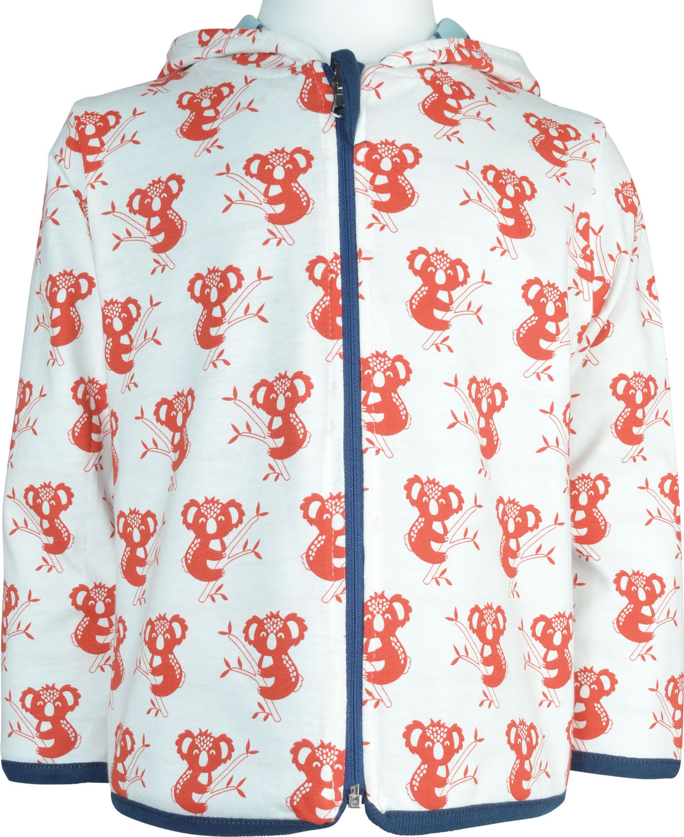Schöne Sweat-Jacke zum Wenden mit Kapuze von LOUD + PROUD. Die doppellagige Jacke kann je nach Lust und Laune mit der geringelten Seite oder der Seite mit den lustigen Koalas getragen werden. Verschlossen wird die Jacke mit einem Reißverschluss.