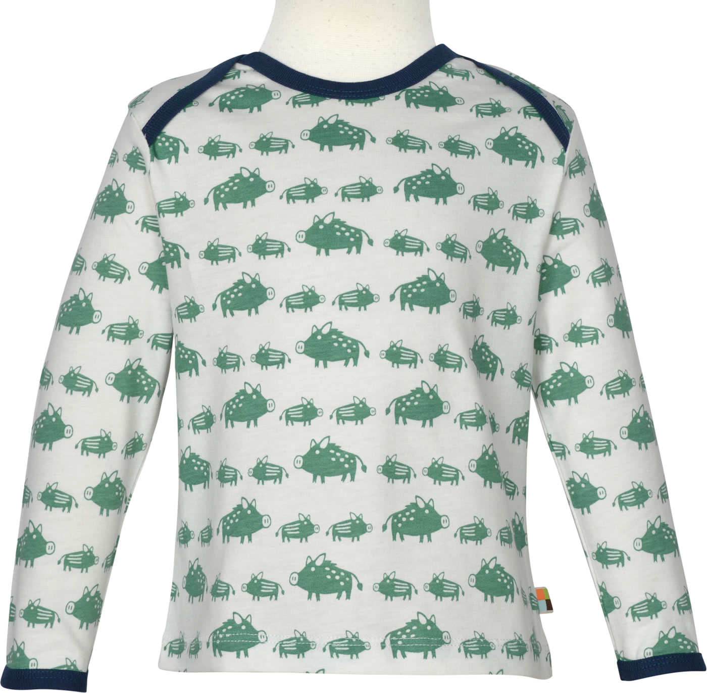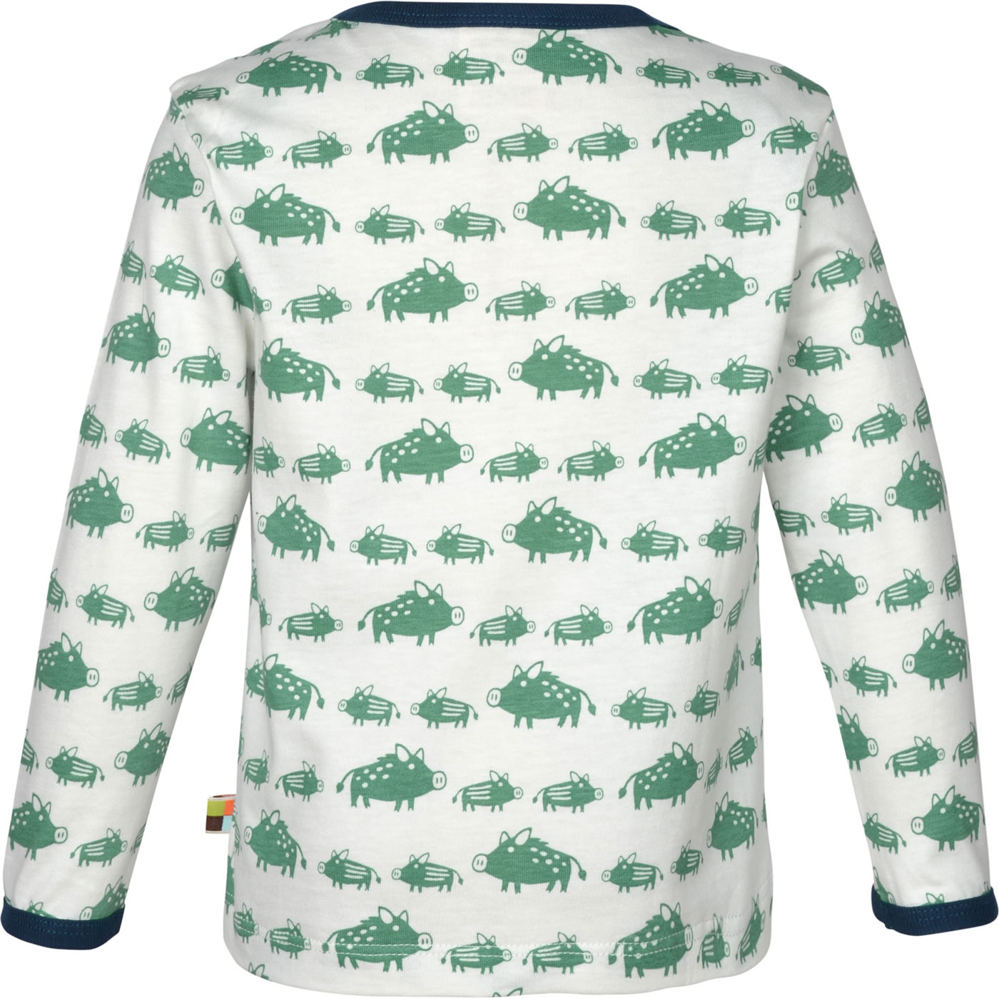 Langarm-Shirt von LOUD+PROUD aus weichem Single Jersey mit tollen Wildschwein-Motiven. Der Druck ist auf Wasserbasis gearbeitet und die Bündchen sind mit Feinripp in einer Kontrastfarbe eingefasst. Bis Größe 86/92 weit zu öffnender Halsausschnitt, ab Größe 98/104 Rundhals-Ausschnitt. Mit Logo-Fähnchen an der Seitennaht.