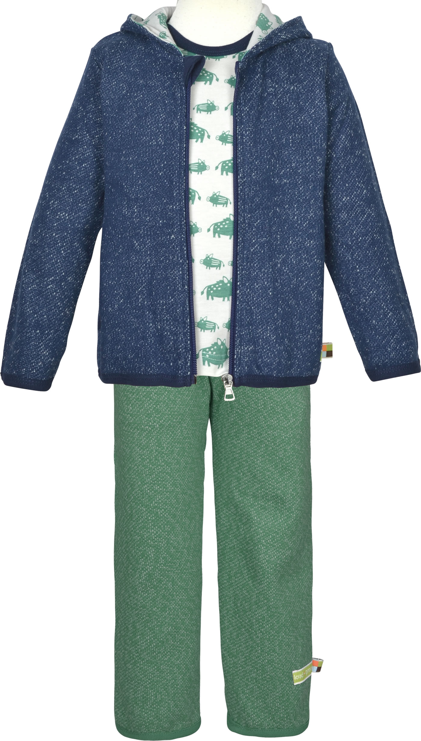 Kombinationsempfehlung: Auf dem Detailbild zusammen mit den Artikeln loud + proud Strickjacke Melange mit Kapuze WALDTIERE ultramarin 3092-ul GOTS Ultramarin (Lo00003092ult) und loud + proud Bund-Hose Melange Strick WALDTIERE ivy 4128-ivy GOTS Ivy (Lo00004128ivy).