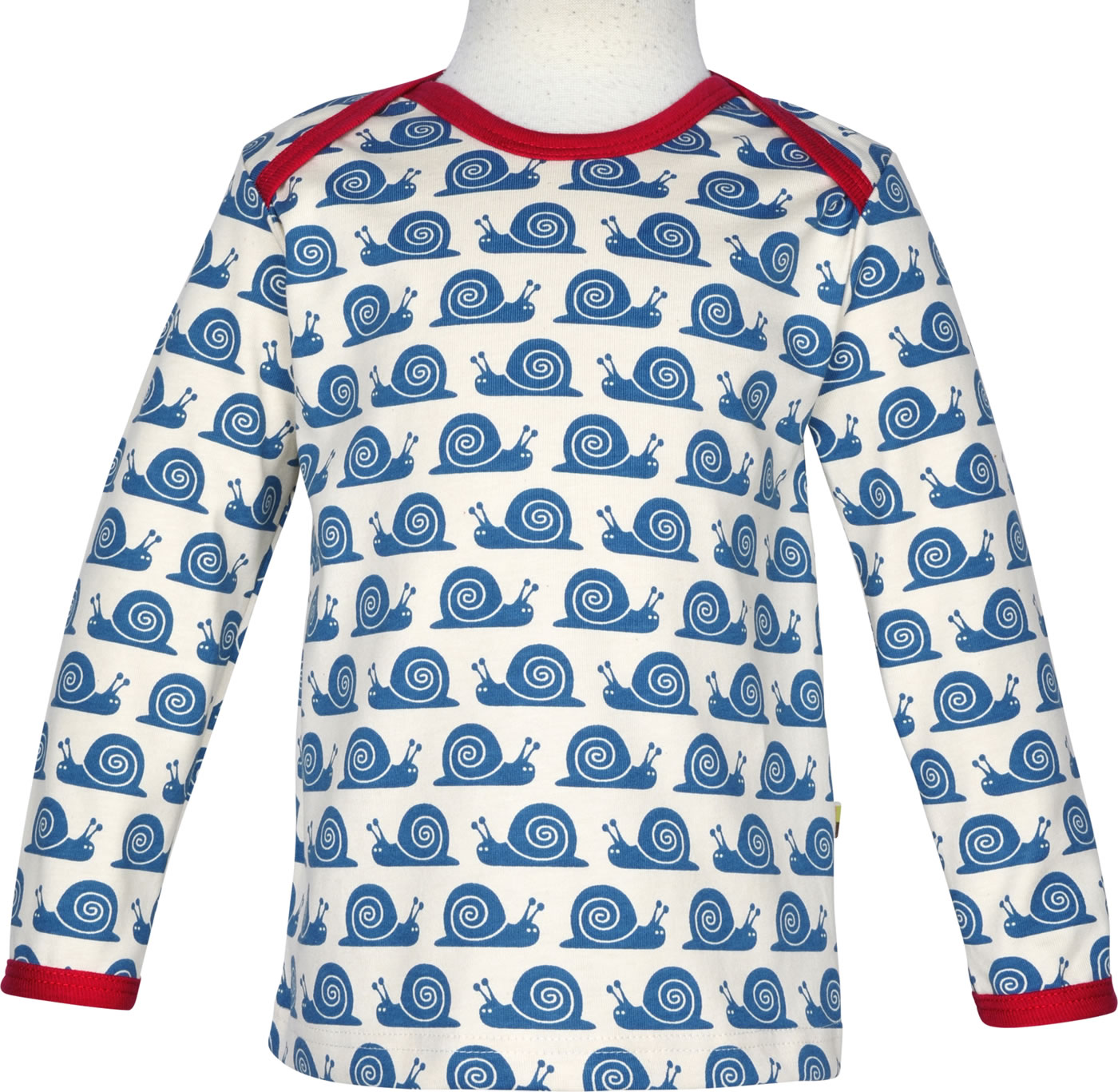 Tolles Langarmshirt von LOUD + PROUD mit Schnecken-Allover-Print aus angenehm weicher Baumwolle. Die Armbündchen und der Kragen schließen mit Kontrastpaspeln in tomato ab. In Größe 86/92 mit Wickelkragen zum Erleichtern des An- und Ausziehens.