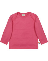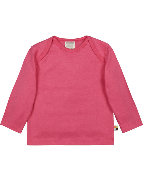 Farbiges Langarm-Shirt von LOUD+PROUD aus weichem Single Jersey. Bis Größe 86/92 weit zu öffnender Halsausschnitt, ab Größe 98/104 Rundhals-Ausschnitt. Mit Logo-Fähnchen an der Seitennaht.