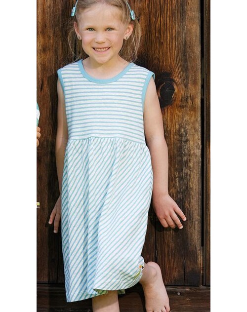 loud+proud Trägerkleid gestreift aus Baumwolle/Leinen - Lagoon