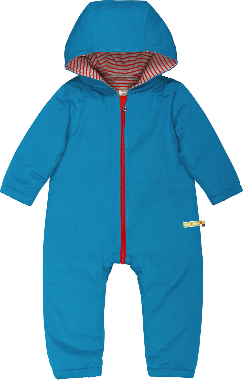 Wattierter Outdoor-Overall aus 100 % organischer Baumwolle von LOUD + PROUD. Die atmungsaktive BIONIC-FINISH ECO-Imprägnierung ist fluorfrei und macht ihn wasser- und schmutzabweisend. Er ist besonders leicht und das Material sorgt für einen hohen Tragekomfort. Die Kapuze ist mit einem weichen, gestreiften Baumwoll-Stoff gefüttert. Die Fuß- und Ärmelbündchen sind mit einem Gummibündchen ausgestattet. Ein toller Kontrast ist der farblich abgesetzte Reißverschluss.