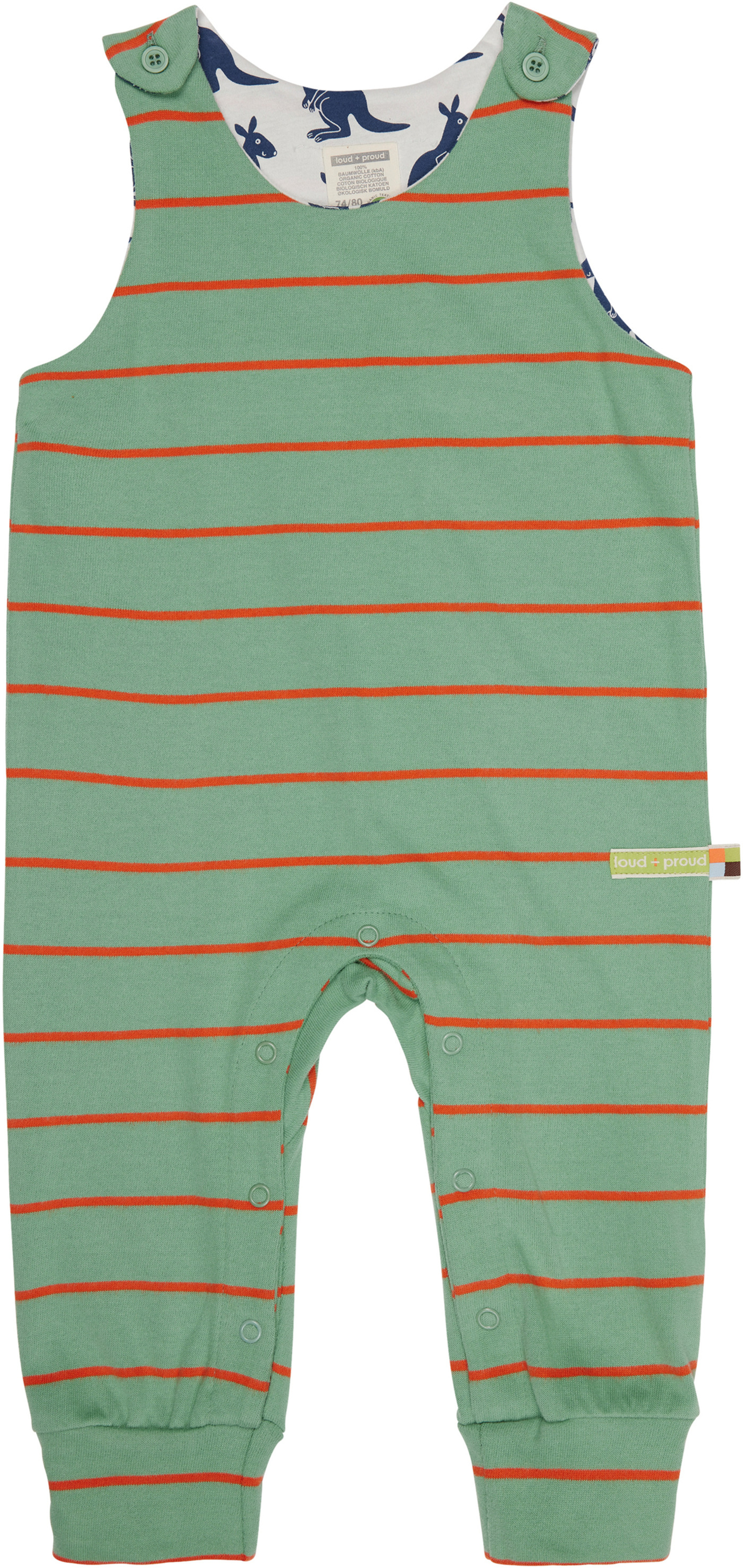 Strampler aus weichem Sweat-Stoff von LOUD + PROUD. Knöpfe auf der Schulter zum An- und Ausziehen. Zum bequemen Wickeln kann der Schritt mit nickelfreien Druckknöpfen geöffnet und verschlossen werden. Der innere Schulterbereich ist bunt mit Kängurus bedruckt. Das weiche Material aus ökologischer Baumwolle bietet einen hohen Tragekomfort.