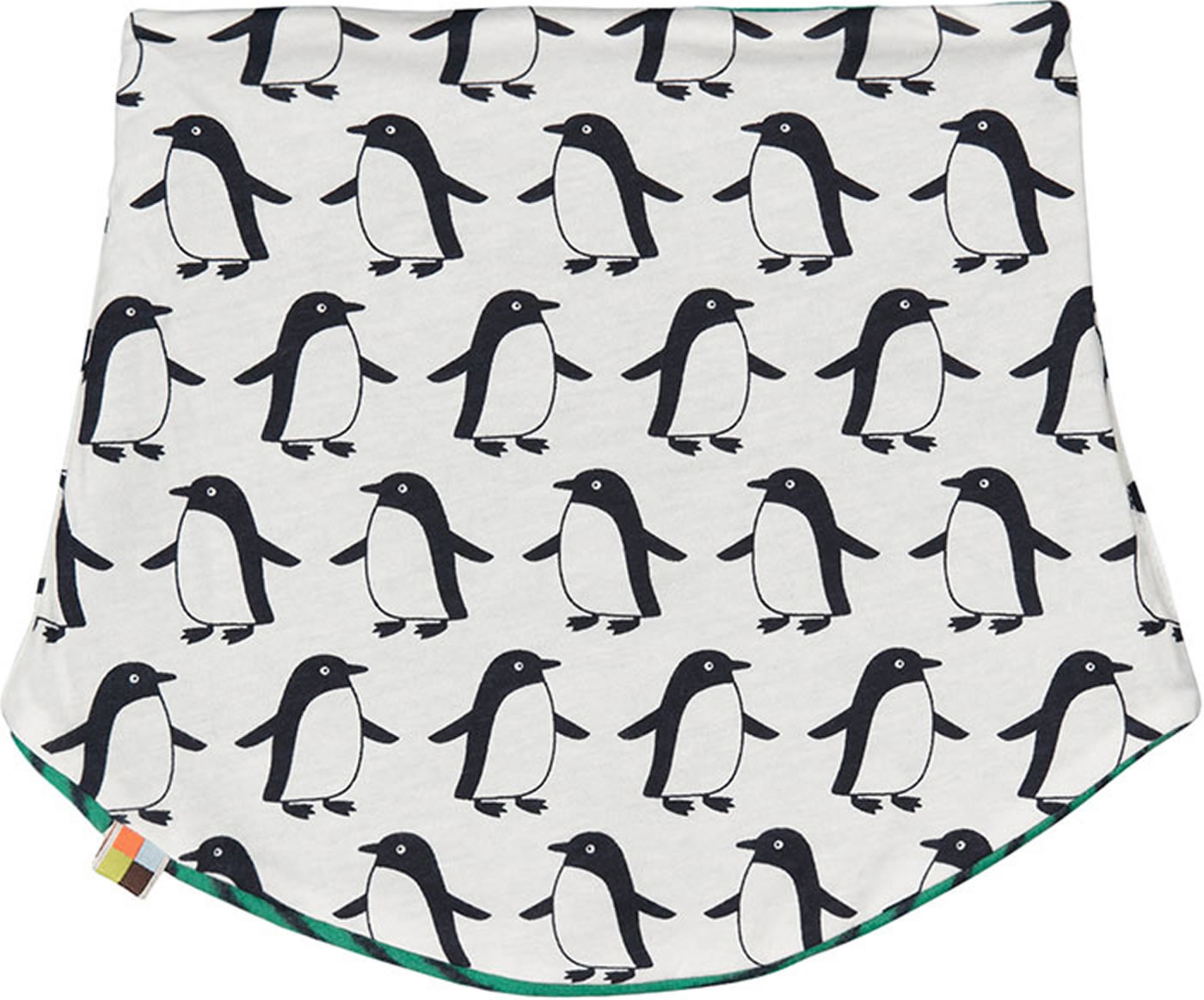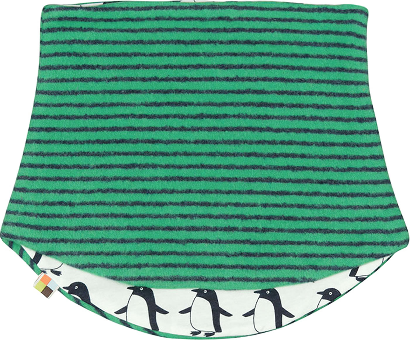 Toller Schlauchschal zum Wenden aus Baumwoll-Fleece von LOUD + PROUD mit ganzflächig aufgedruckten Pinguinen auf der Innenseite und einem witzigen Ringelmuster in blau und grün auf der Außenseite. Beide Seiten sind tragbar. Der Druck besteht auf Wasserbasis. Ein schönes Accessoire für kalte Tage.
