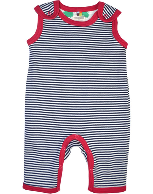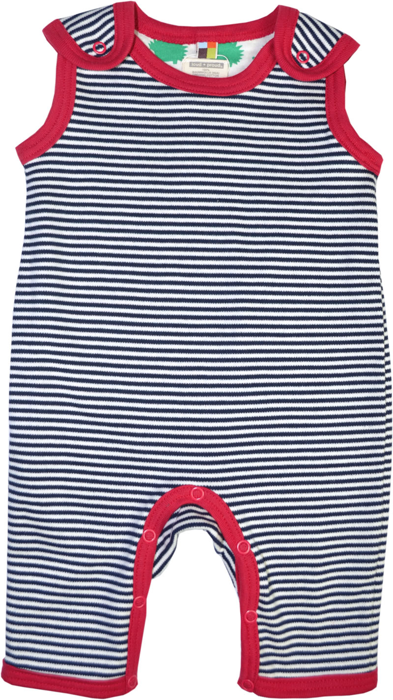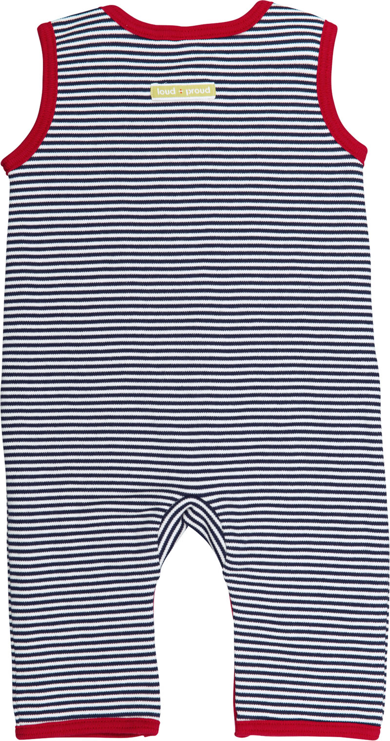 Bequemer Strampler von LOUD + PROUD in navy geringelt ohne Füße zum Wenden. Der Strampler ist aus angenehm weicher Baumwolle. Mit großer Knopfleiste im Schritt.