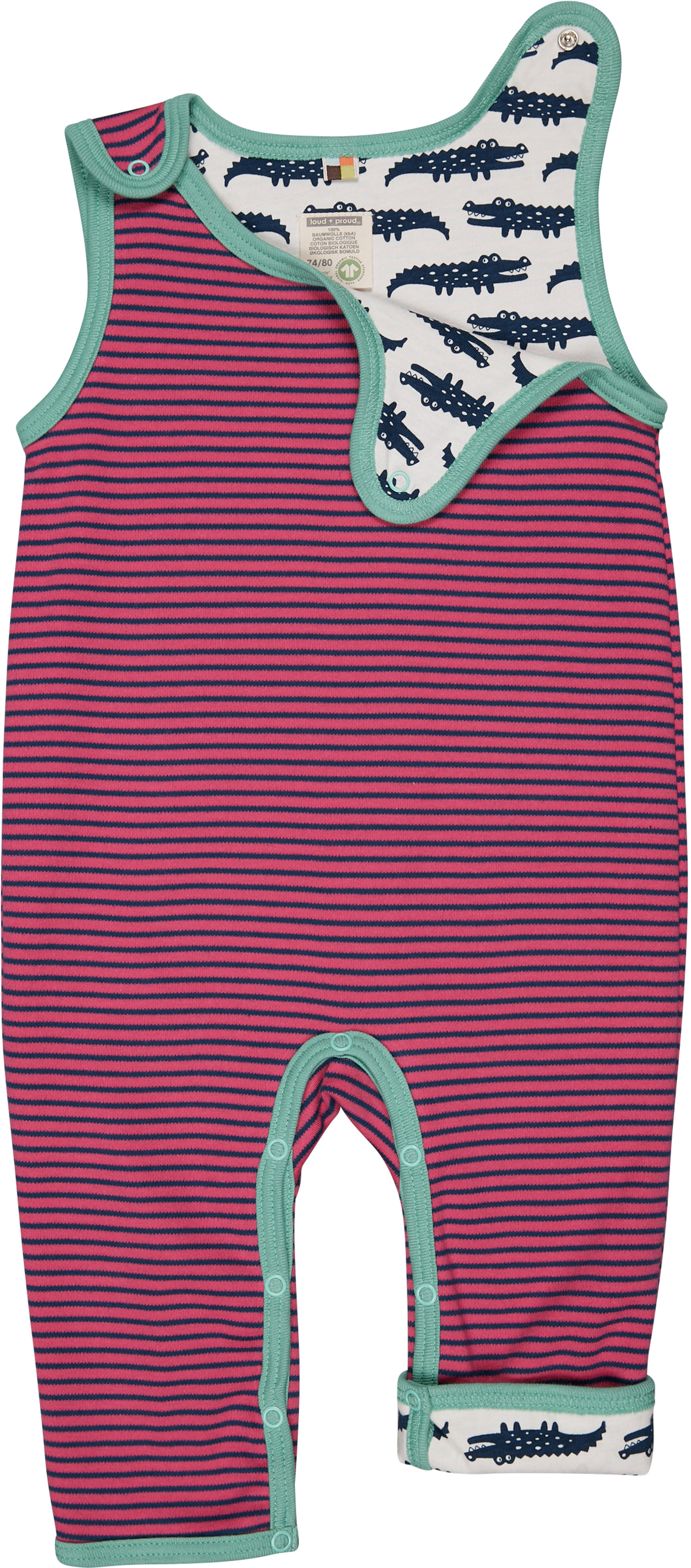 loud+proud Wende-Strampler aus 100% Baumwolle - Krokodile/Streifen Azalea