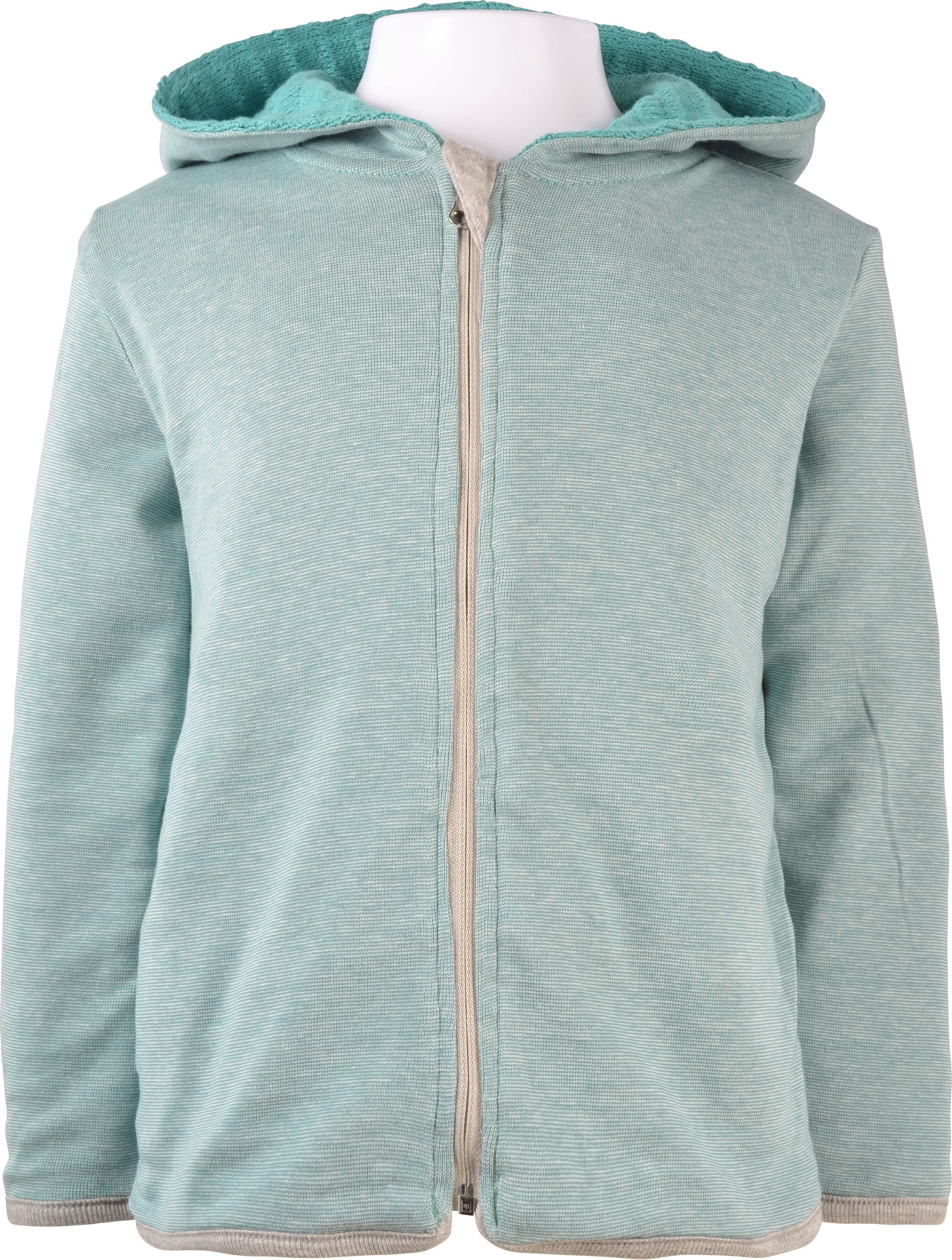 Die farbenfrohe Wende-Jacke mit Kapuze von LOUD + PROUD kann von beiden Seiten getragen werden und lässt so eine vielzahl von Kombinationsmöglichkeiten nach Lust und Laune zu. Die eine Seite ist aus weichem Jersey und die andere Seite hat ein Strickmuster. Die Bündchen und der Reißverschluss mit Kinnschutz sind in einer Kontrastfarbe gearbeitet.