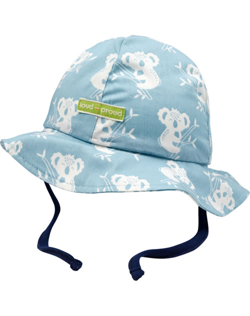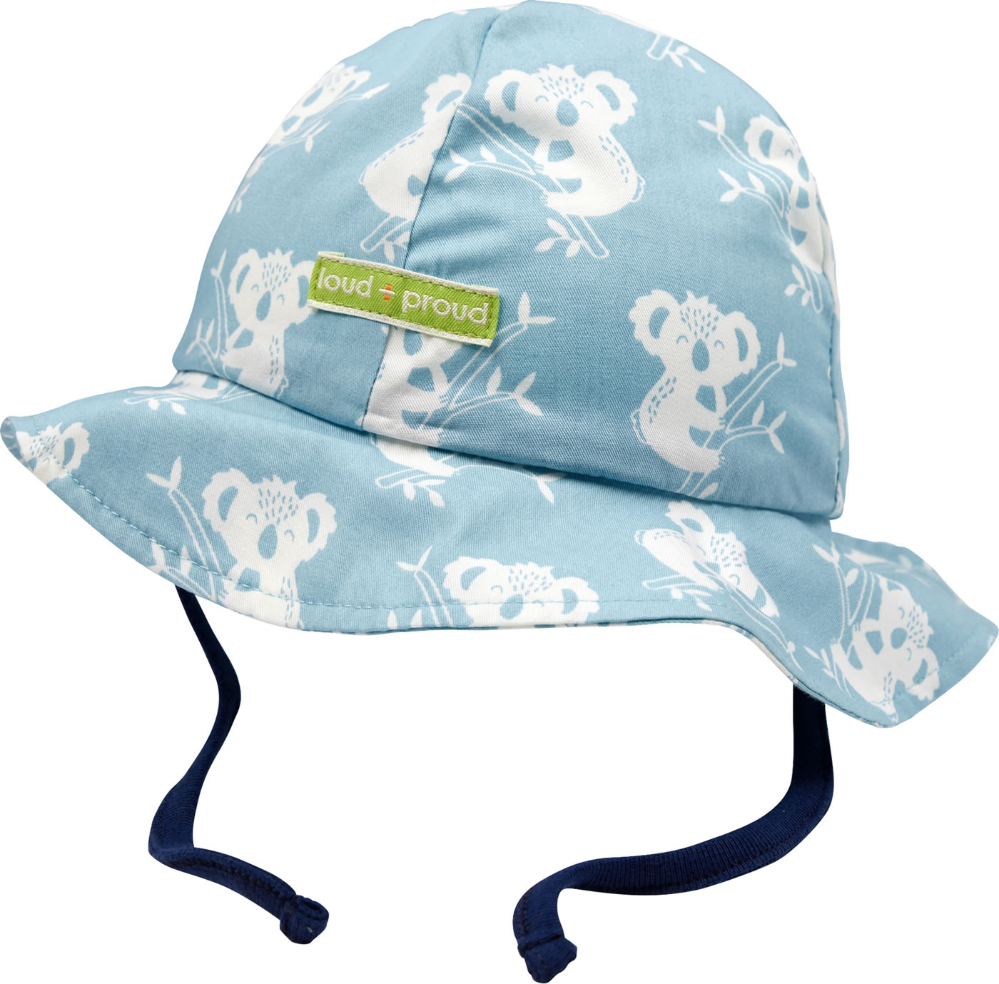 Outdoor-Hut aus 100 % organischer Baumwolle von LOUD + PROUD. Die lustigen Koalas machen diesen Hut mit farbig abgesetztem Band zum Binden zu einem echten Blickfang. Die atmungsaktive BIONIC-FINISH ECO-Imprägnierung ist fluorfrei und macht den Hut wasser- und schmutzabweisend. Der Hut ist besonders leicht und das Material sorgt für einen hohen Tragekomfort.