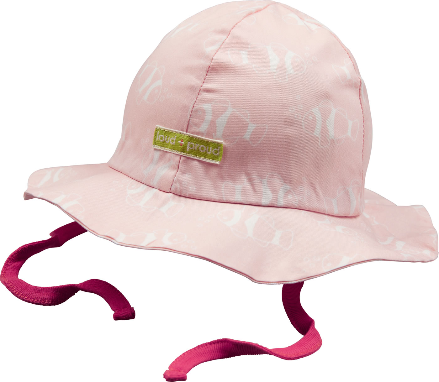 Outdoor-Hut aus 100 % organischer Baumwolle von LOUD + PROUD. Das Fisch-Muster machen diesen Hut mit farbig abgesetzten Band zum Binden zu einem echten Blickfang. Die atmungsaktive BIONIC-FINISH ECO-Imprägnierung ist fluorfrei und macht ihn wasser- und schmutzabweisend. Der Hut ist besonders leicht und das Material sorgt für einen hohen Tragekomfort.