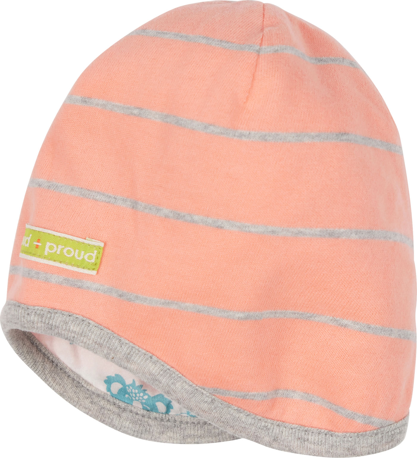 Doppellagige Wendemütze aus weichem Baumwolljersey von LOUD + PROUD. Je nach Lust und Laune kann die geringelte Seite oder die Seite mit den Koalas getragen werden.