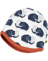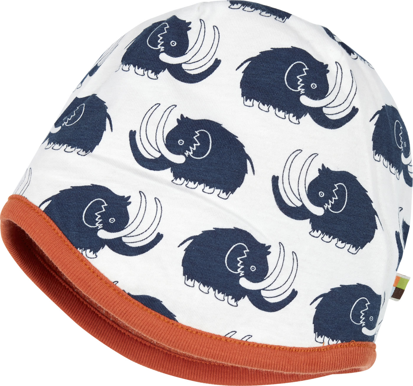 Tolle Wendemütze aus Strick von LOUD + PROUD. Die gestrickte Seite ist meliert, die Jersey-Seite hat einen tollen Mammut Print.