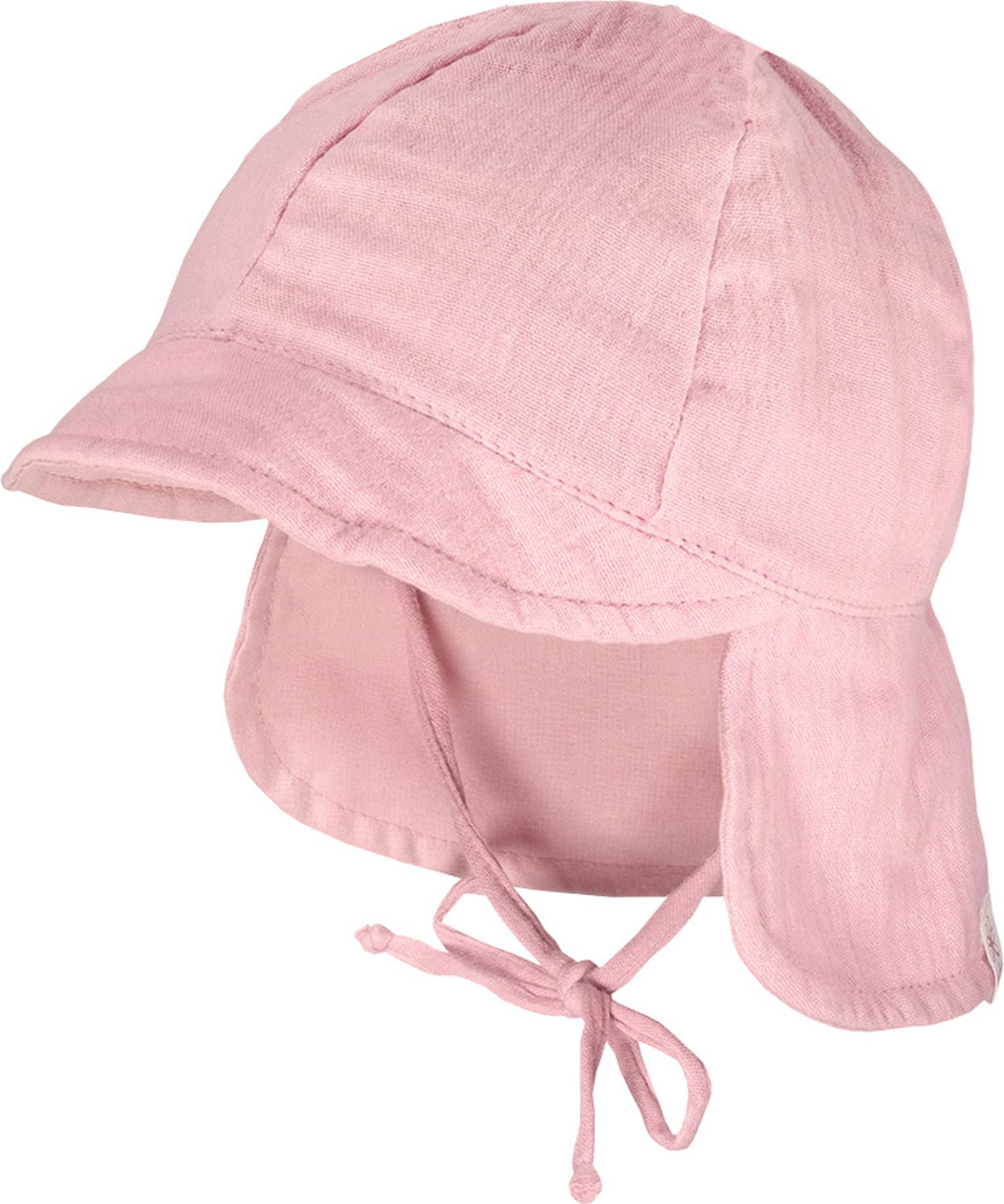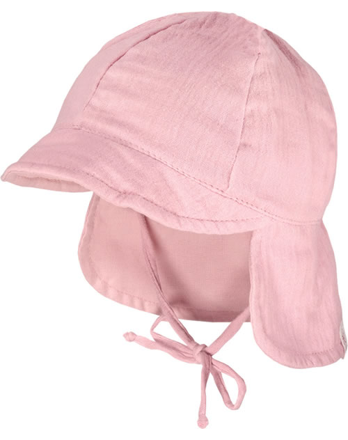 Sommerliche Mütze aus Musselin mit Schirm in altrosa von MAXIMO mit Nackenschutz und Bindeband.