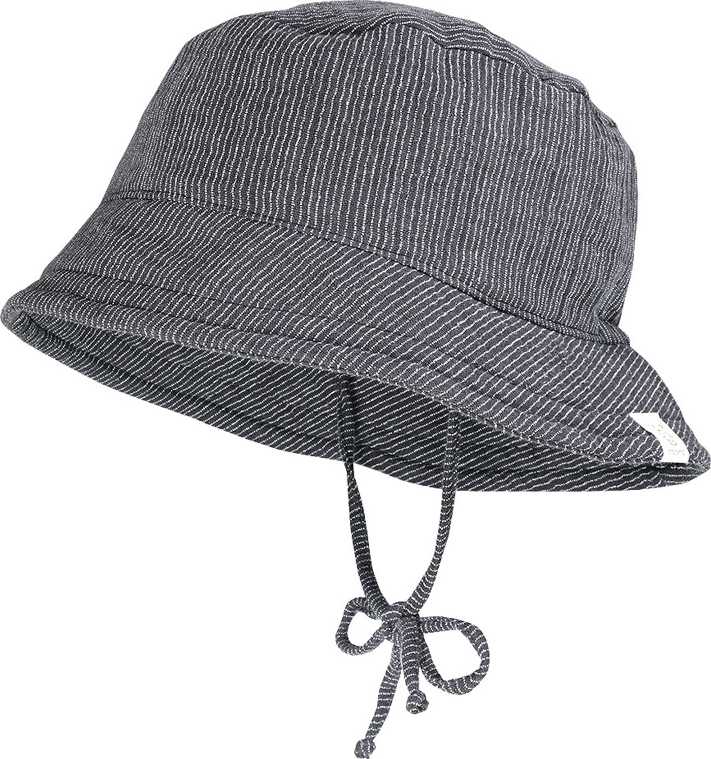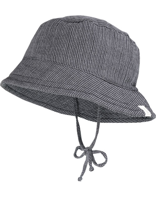 Schöner Sonnenhut in anthrazit-weiß mit Streifen für Jungen von MAXIMO. Ein Bindeband sorgt für sicheren Halt. Das Gesicht wird durch eine breite Krempe und mit UV-Schutz 50 vor zu viel Sonnenlicht geschützt.