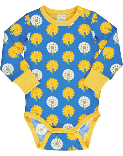 Maxomorra Baby-Body Langarm DANDELION blau/gelb