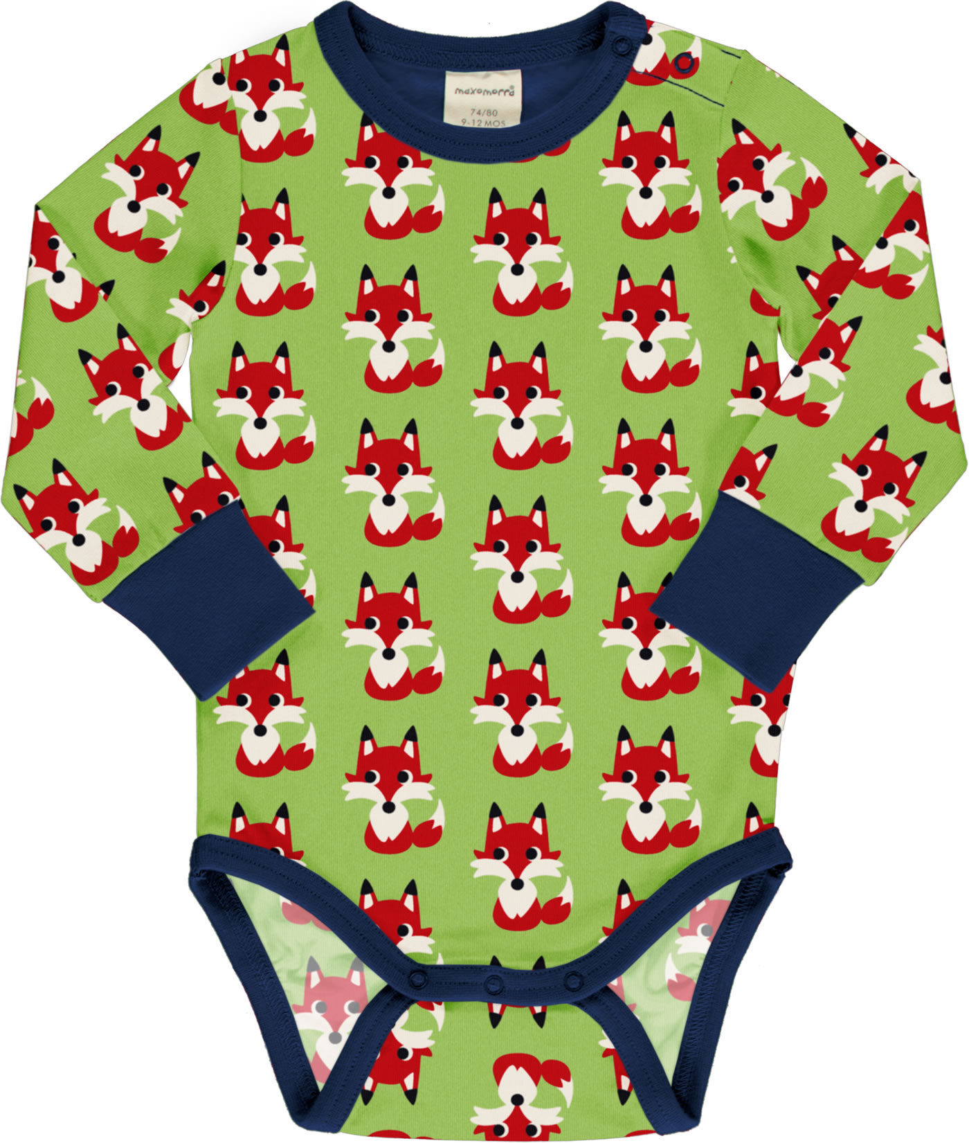 Maxomorra Baby-Body Langarm FOX grün SP22AX03-2264 GOTS
