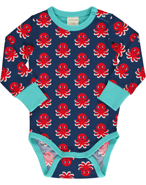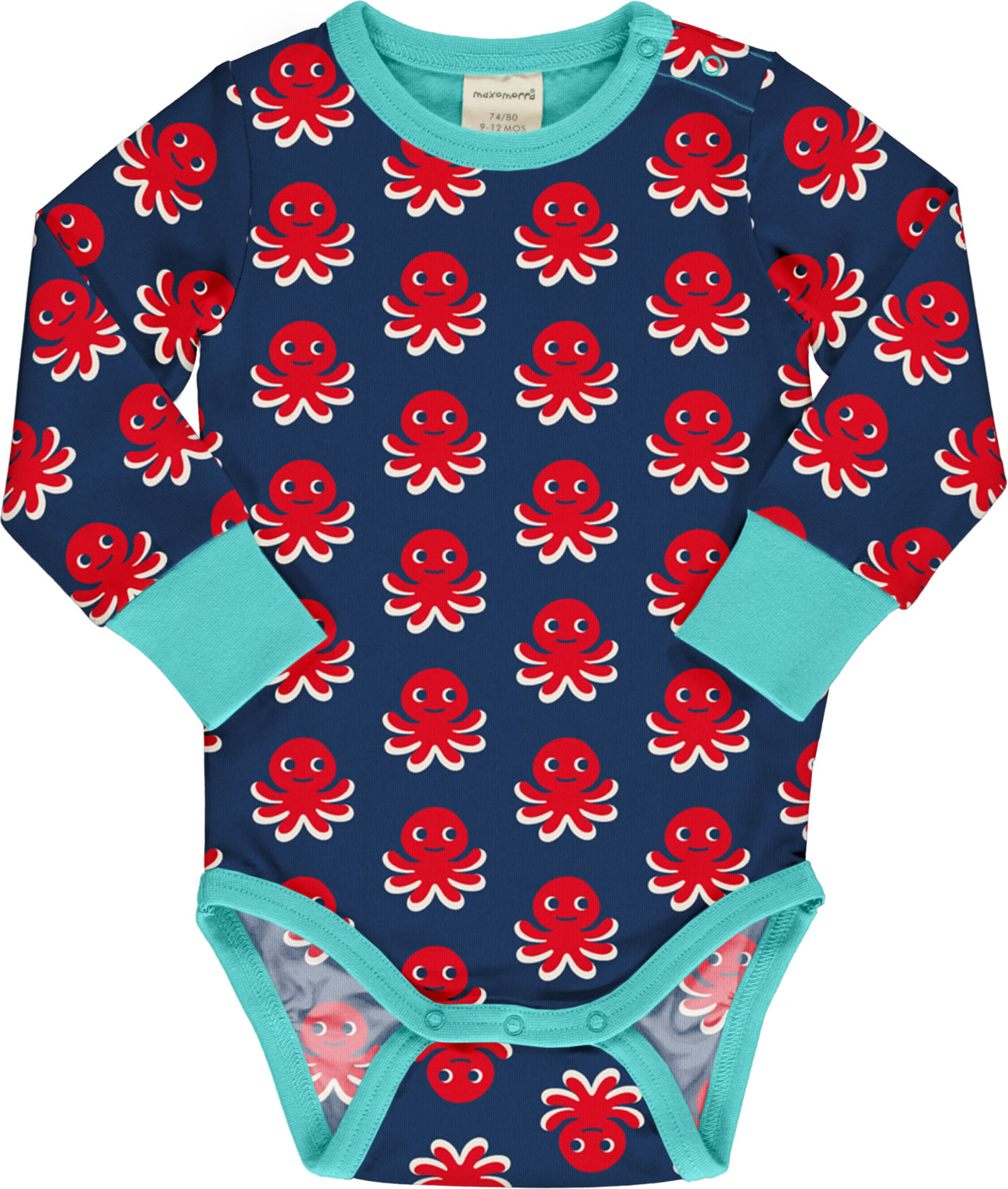 Maxomorra Baby-Body Langarm OCTOPUS blau/rot