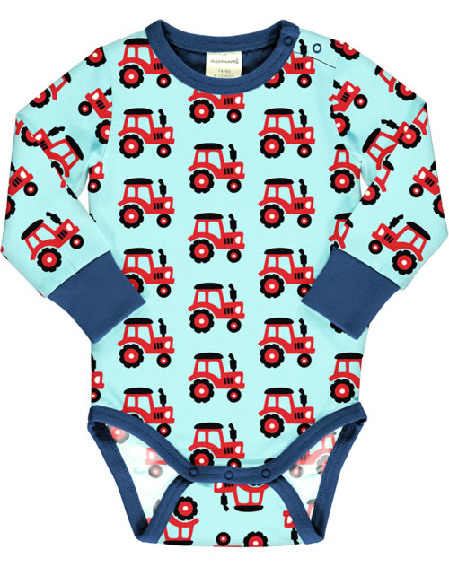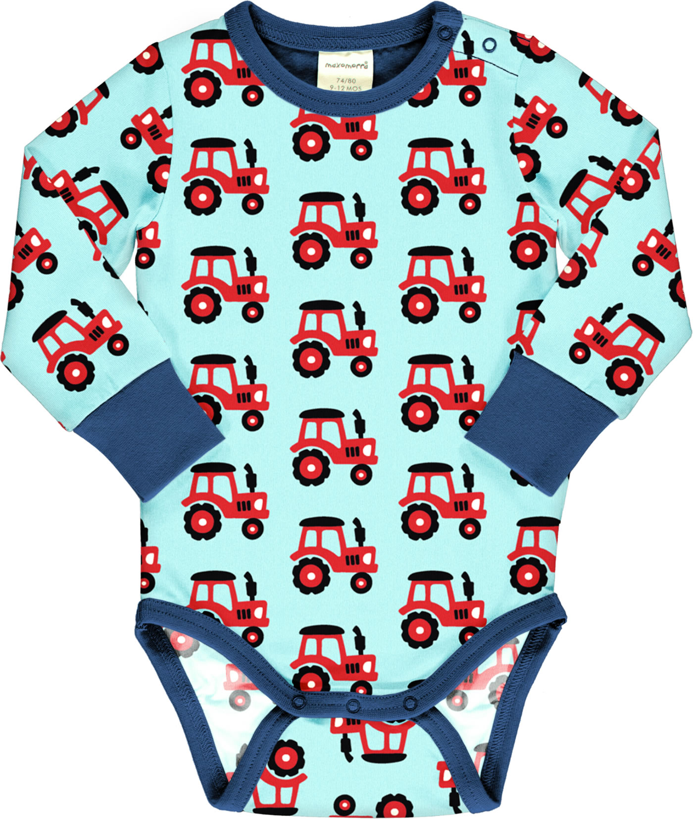 Maxomorra Baby-Body Langarm TRACTOR türkis