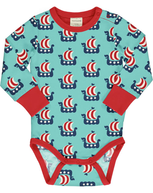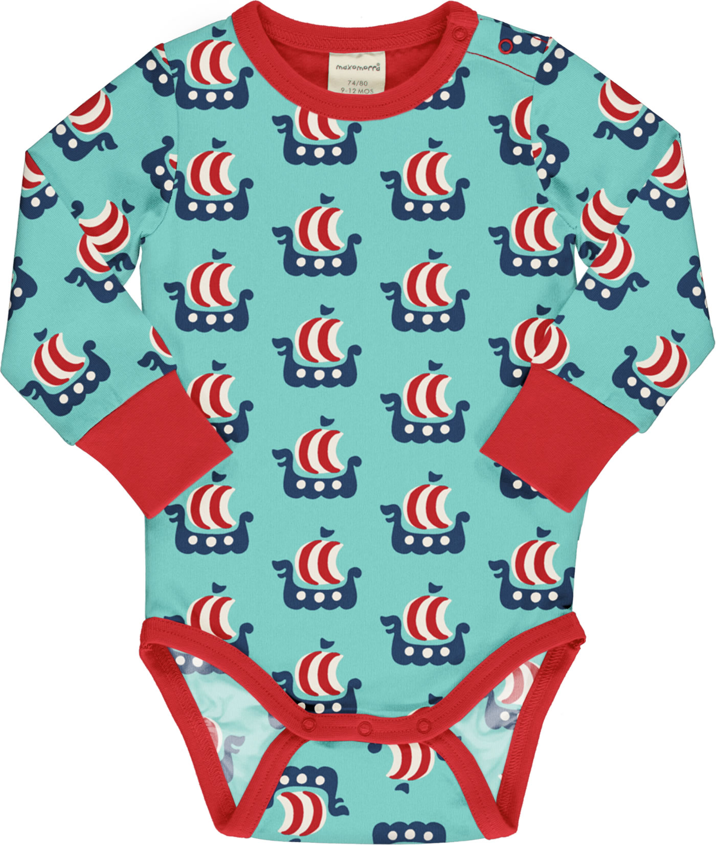 Maxomorra Baby-Body Langarm VIKING SHIP türkis