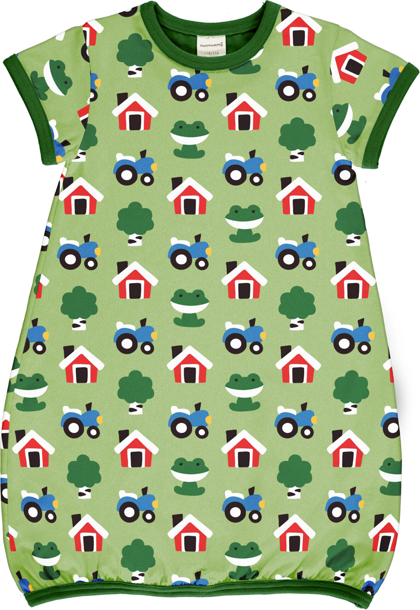 Maxomorra Ballon-Kleid Kurzarm FOREST FARM grün GOTS