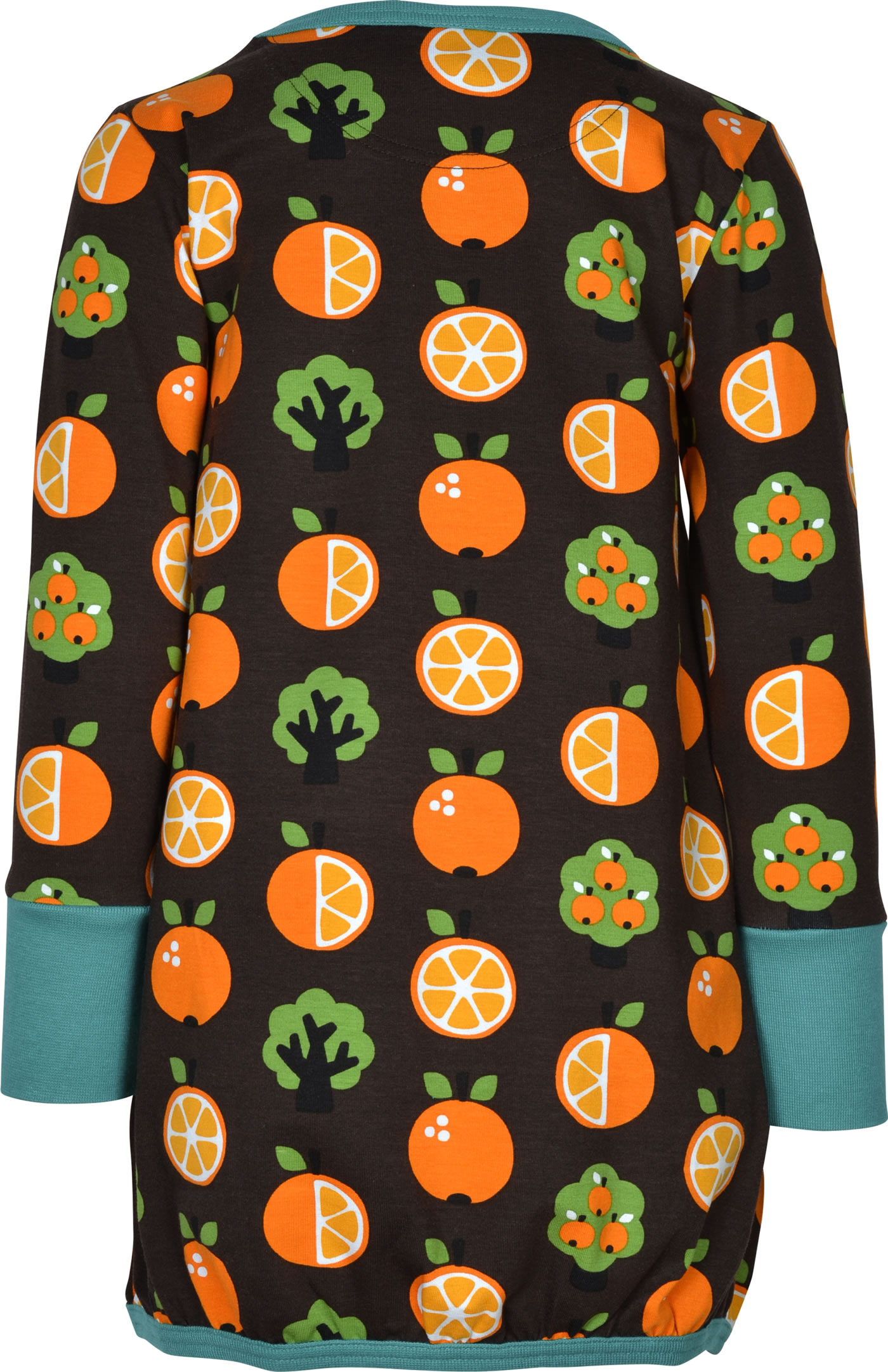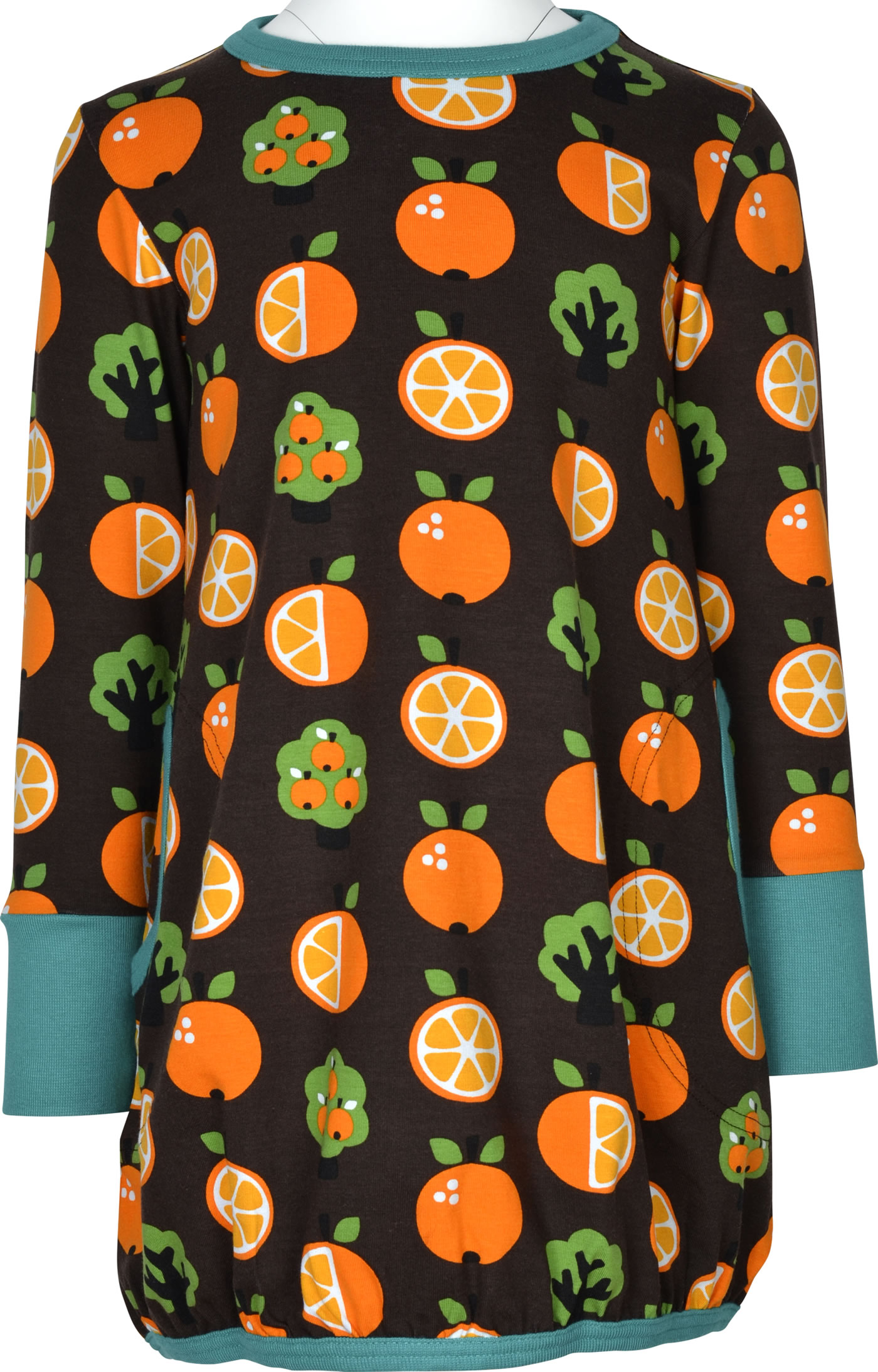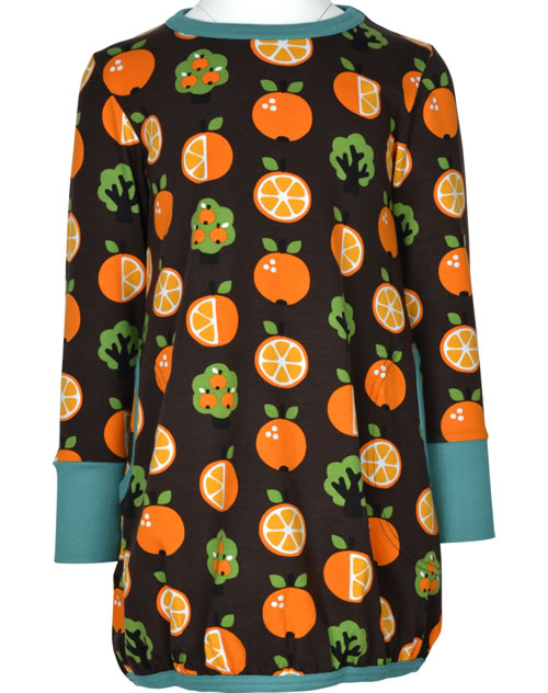 Schönes Ballon-Kleid mit weitem Rock, langem Arm und Orangen-Motiven von MAXOMORRA. Das peppige Design macht dieses Kleid zu einem tollen Blickfang. Für gute Laune sorgen in Kontrast-Farben abgesetzte Bündchen. Das weiche Material sorgt für einen angenehmen Tragekomfort.