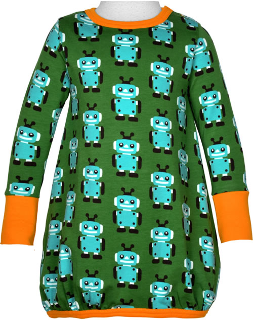 Maxomorra Ballon-Kleid Langarm ROBOT grün