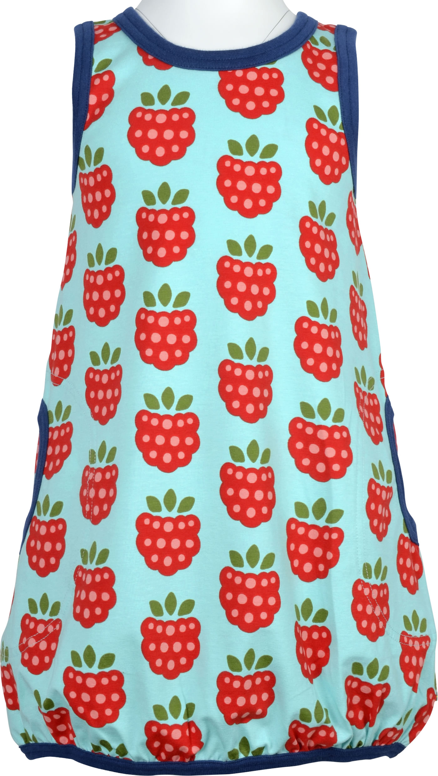 Schönes Ballon-Trägerkleid mit weitem Rock und Himbeeren-Motiven von MAXOMORRA. Das peppige Design macht dieses Kleid zu einem tollen Blickfang. Für gute Laune sorgen in Kontrast-Farben abgesetzte Bündchen. Das weiche Material sorgt für einen angenehmen Tragekomfort.