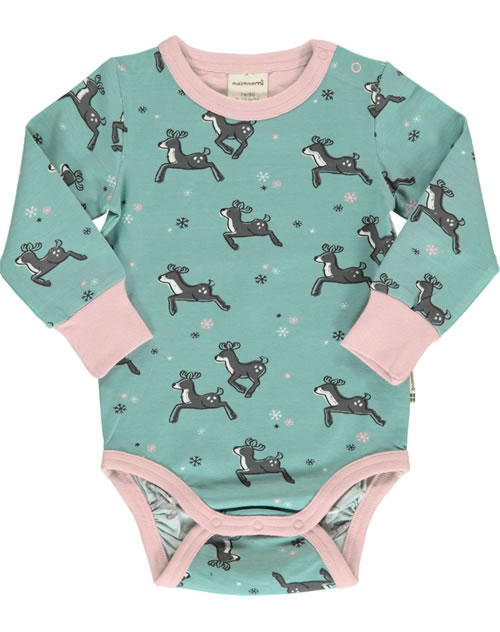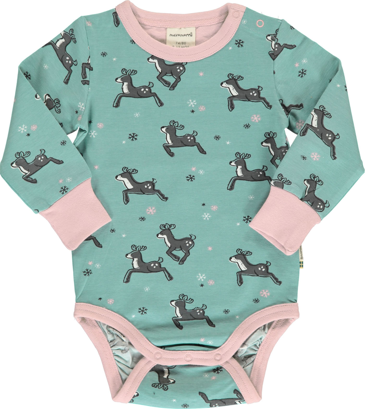 Toller Body in blau mit Rentier-Motiven von MAXOMORRA. Einen tollen Farbkontrast setzen die Bündchen in rosa.