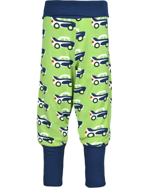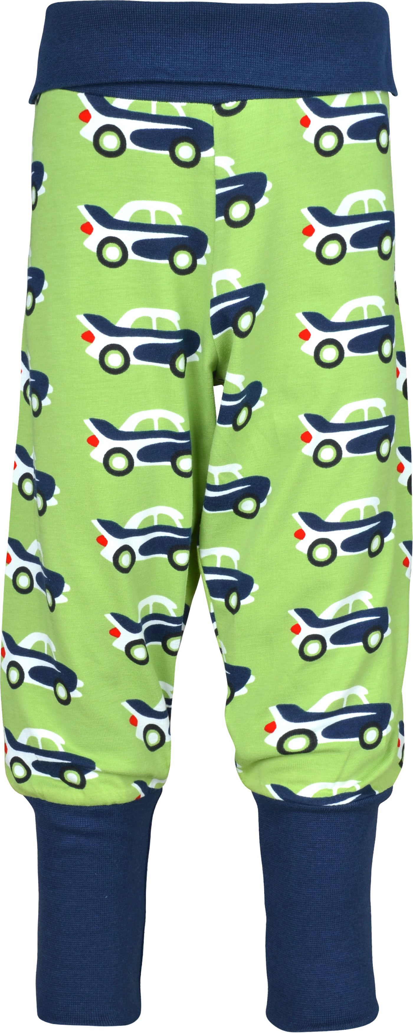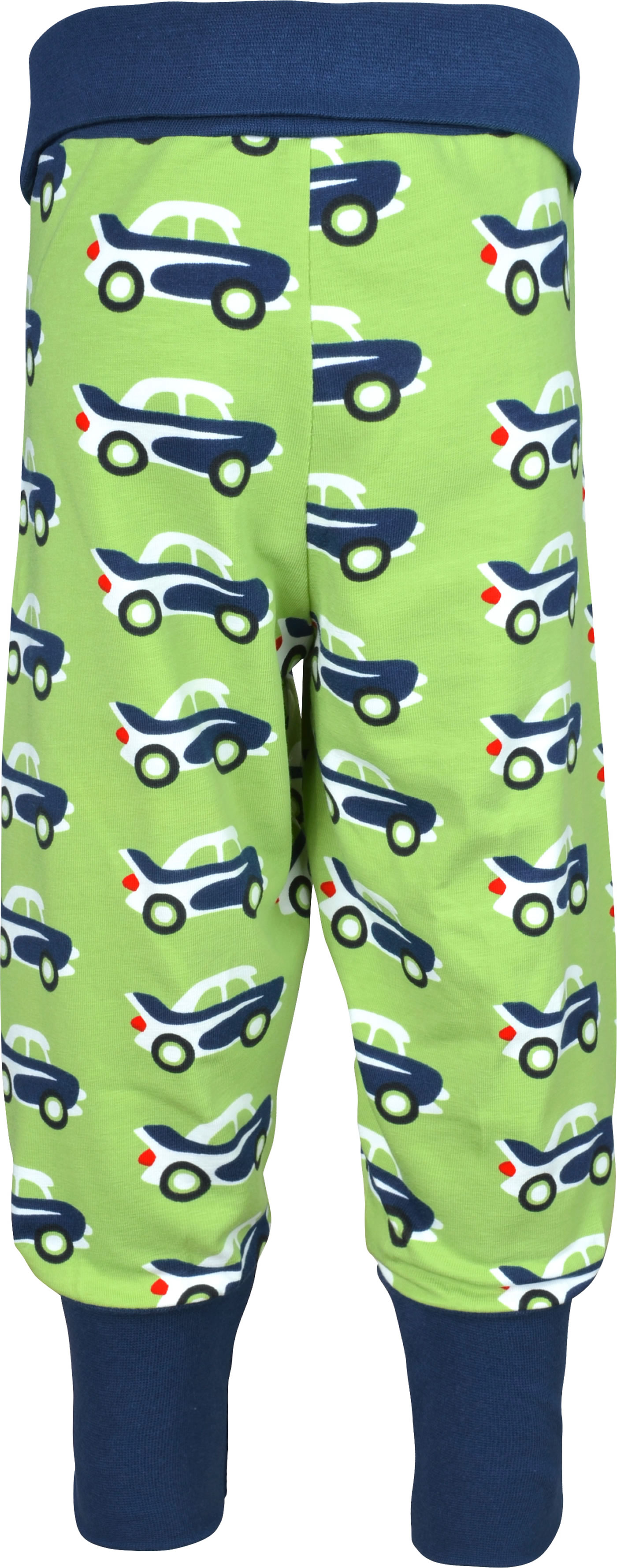 Gemütliche Bund-Hose in grün mit Auto-Motiv von MAXOMORRA. Das beliebte Kleidungsstück hat einen breiten, weichen Gummibund, der das An- und Ausziehen zum Kinderspiel macht. Das weiche Jersey-Material sorgt für einen hohen Tragekomfort.