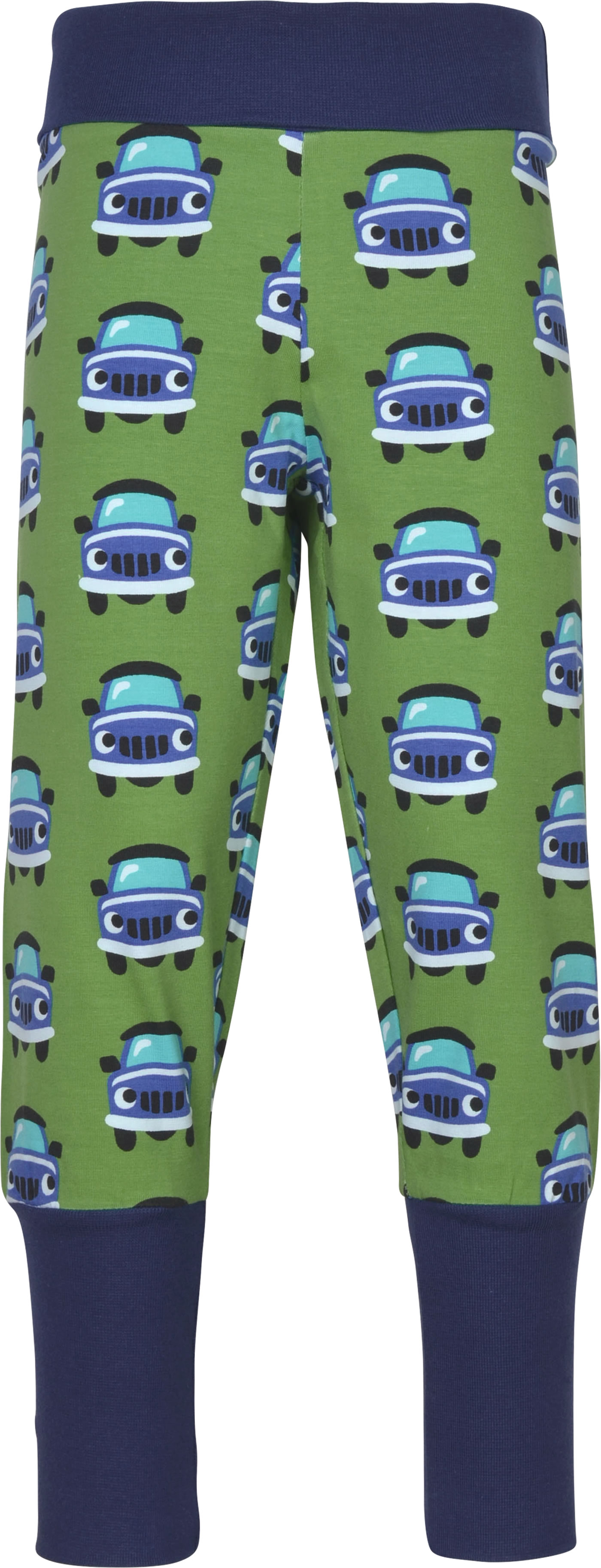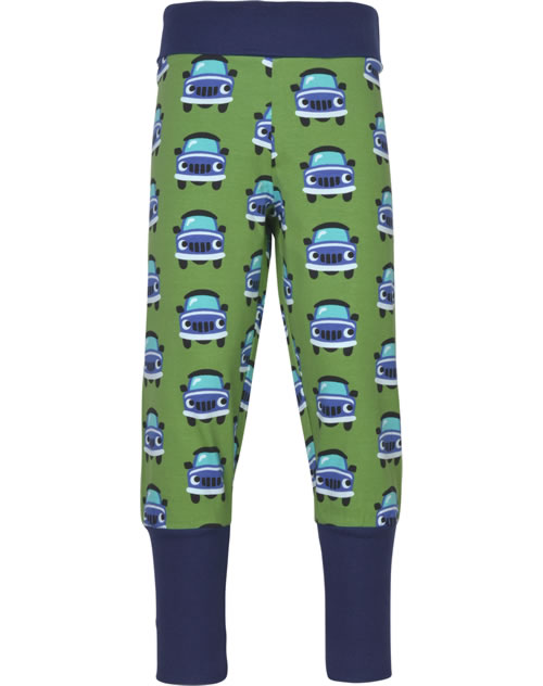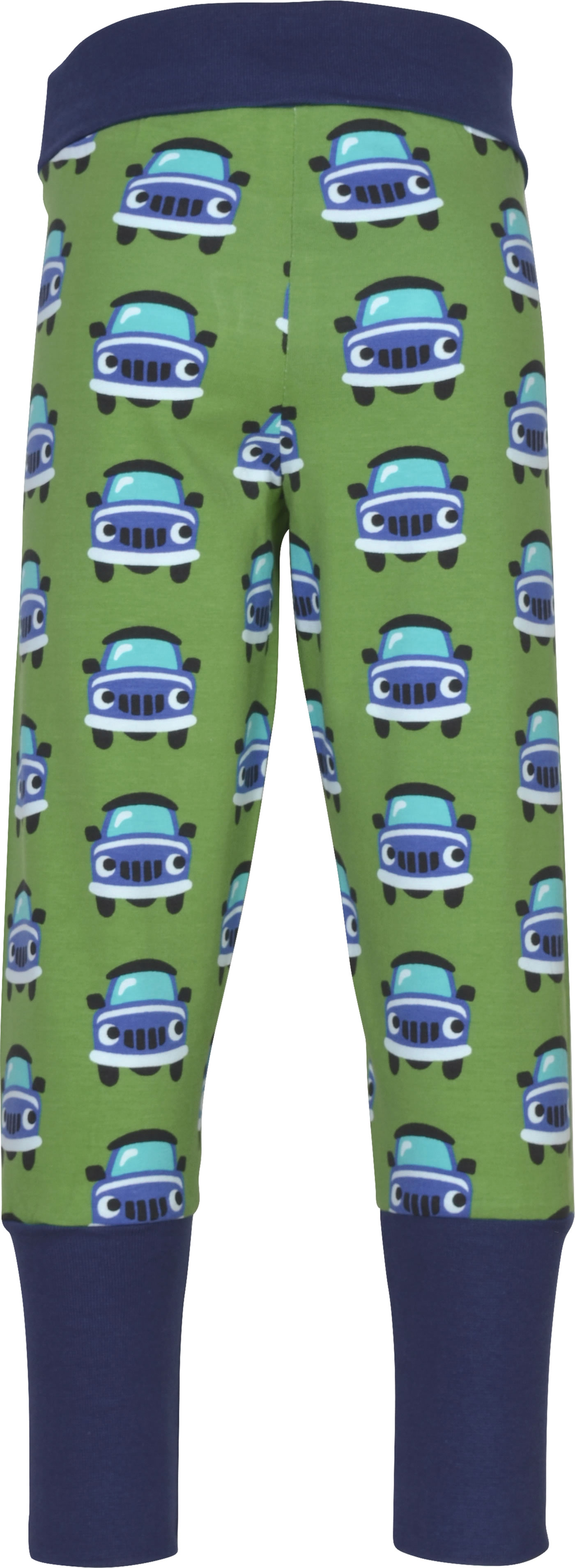 Gemütliche Bund-Hose in grün mit Auto-Motiven von MAXOMORRA. Das beliebte Kleidungsstück hat einen breiten, weichen Gummibund, der das An- und Ausziehen zum Kinderspiel macht. Das weiche Jersey-Material sorgt für einen hohen Tragekomfort.