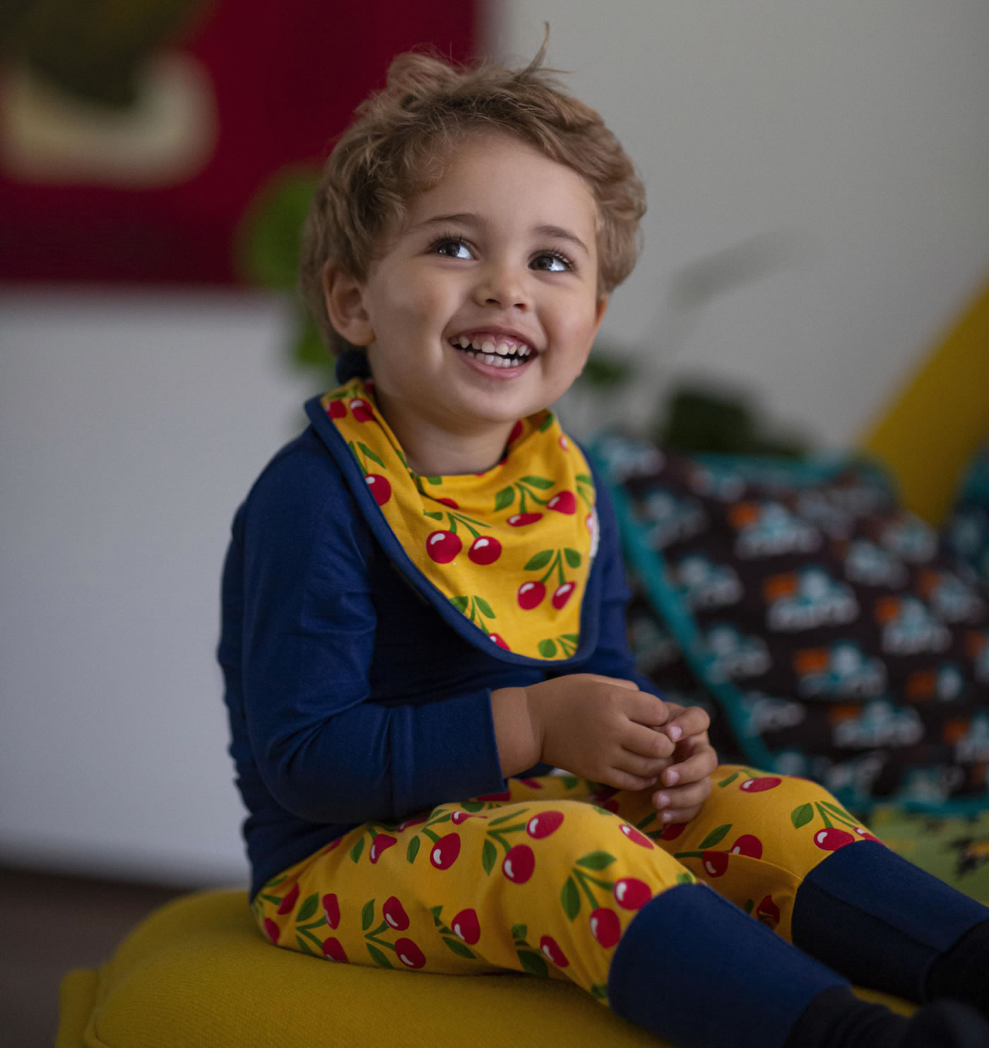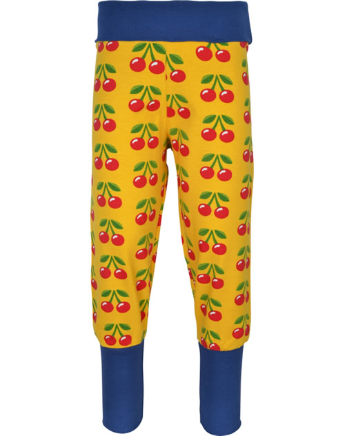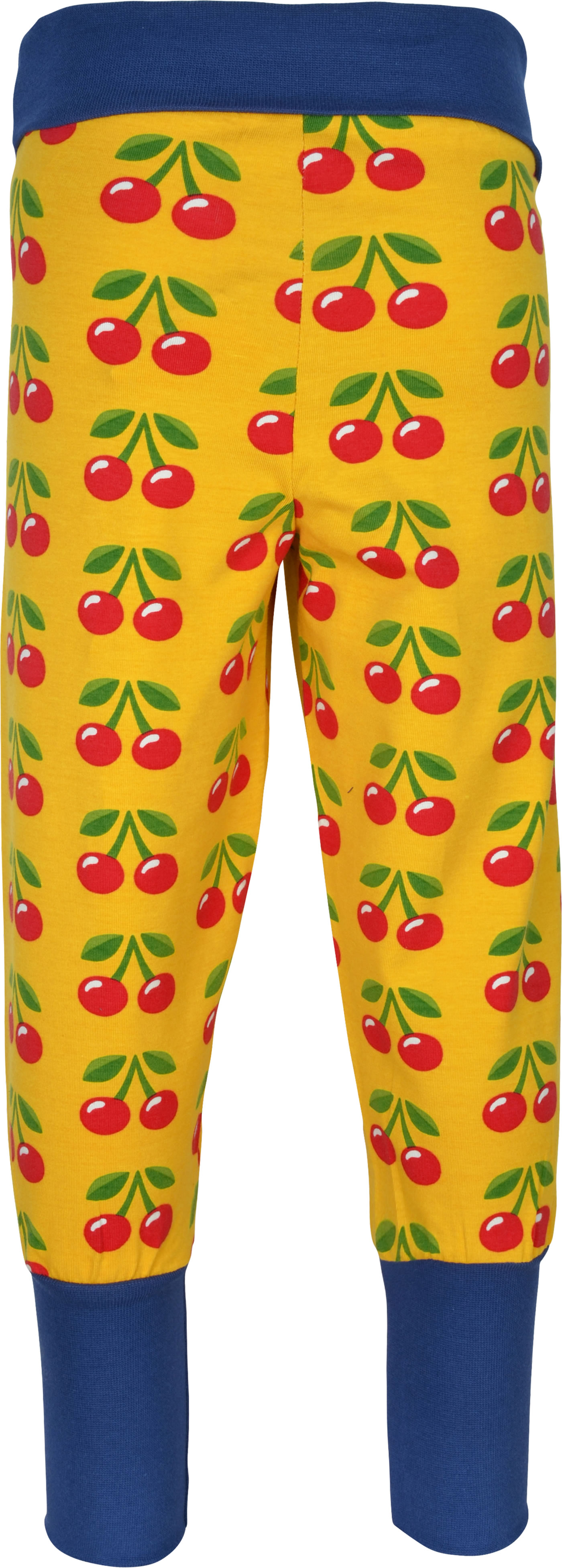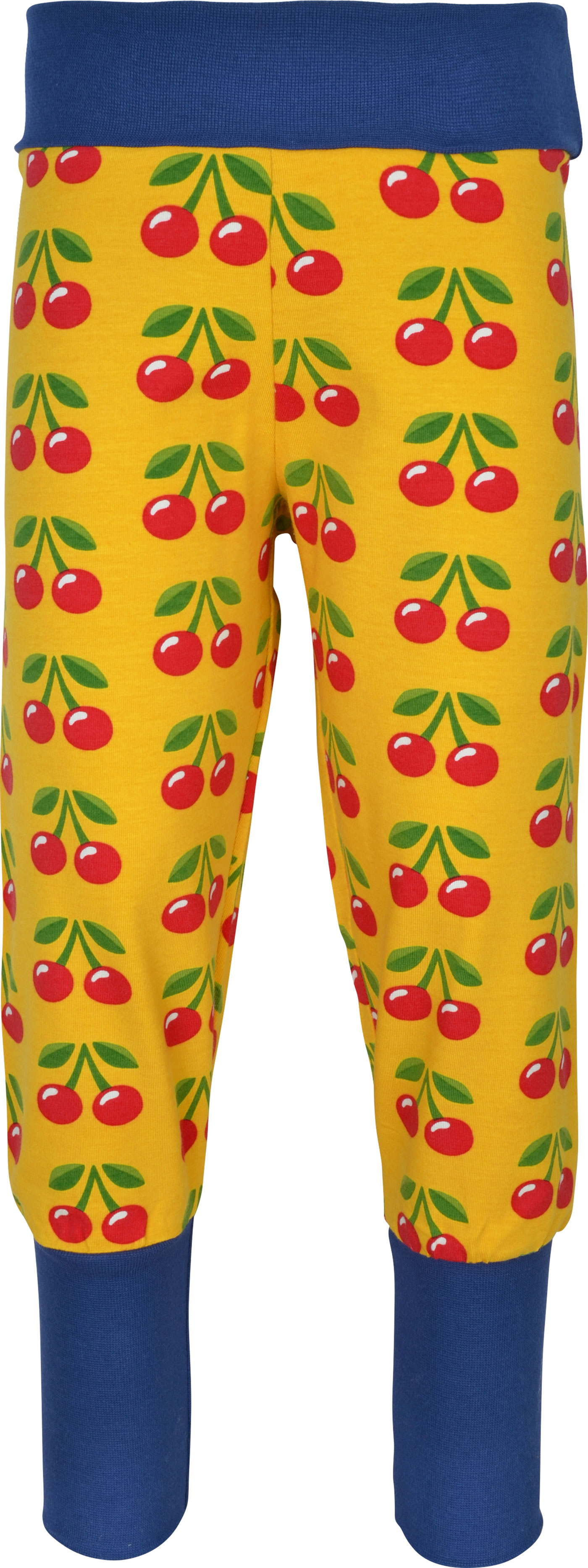 Gemütliche Bund-Hose in gelb mit Kirschen-Motiven von MAXOMORRA. Das beliebte Kleidungsstück hat einen breiten, weichen Gummibund, der das An- und Ausziehen zum Kinderspiel macht. Das weiche Jersey-Material sorgt für einen hohen Tragekomfort.