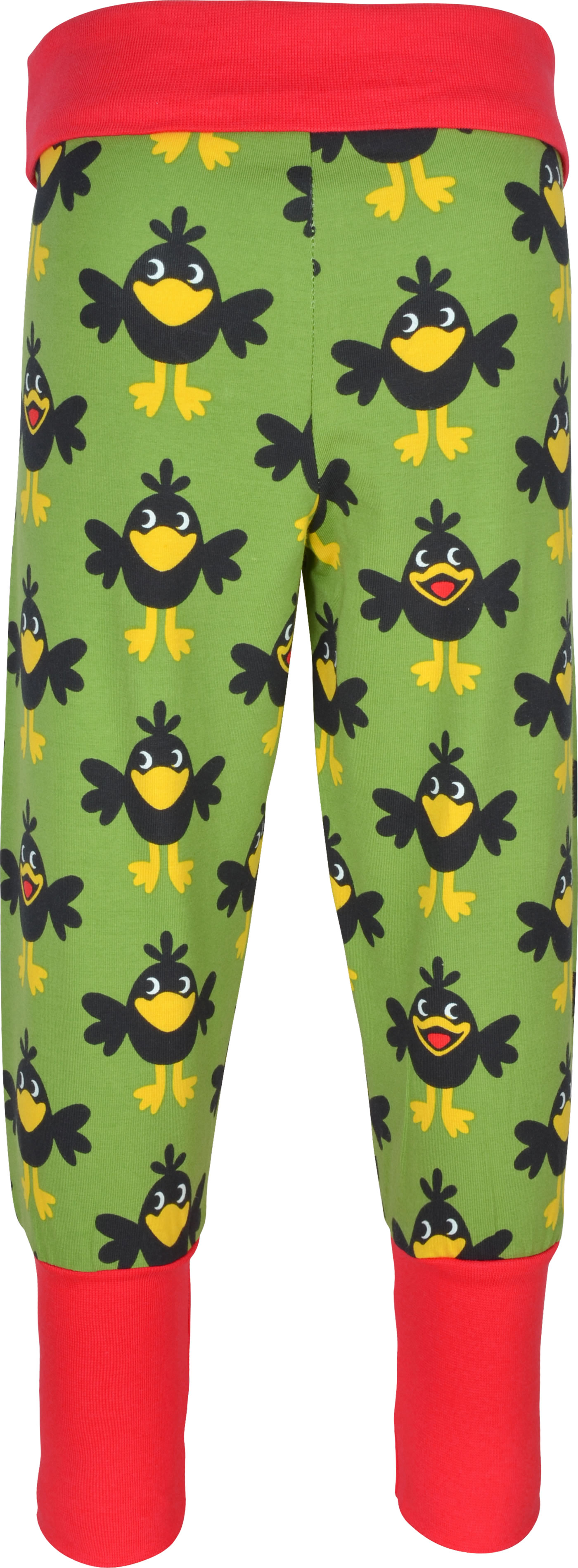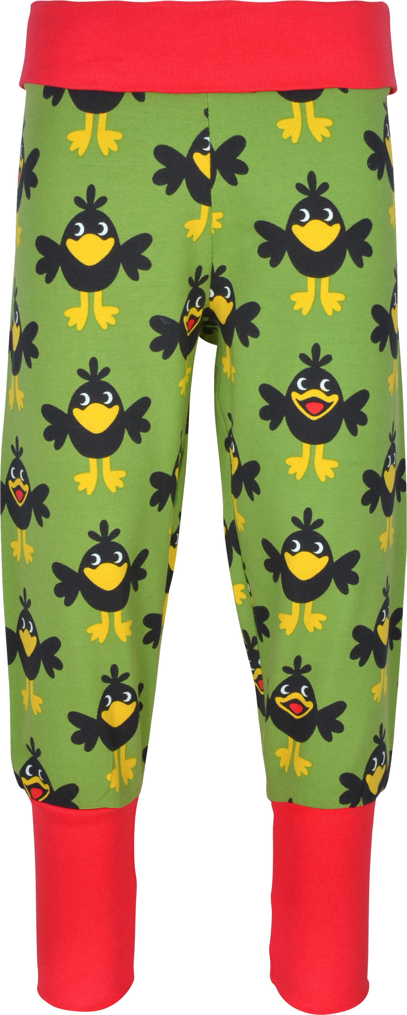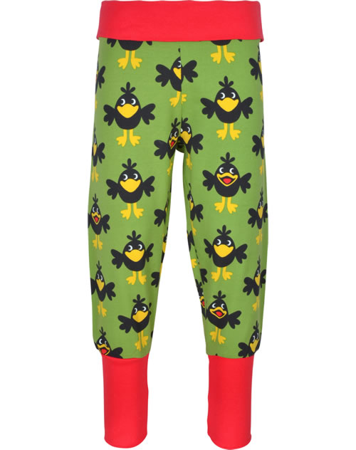 Gemütliche Bund-Hose in grün mit Raben-Motiven von MAXOMORRA. Das beliebte Kleidungsstück hat einen breiten, weichen Gummibund, der das An- und Ausziehen zum Kinderspiel macht. Das weiche Jersey-Material sorgt für einen hohen Tragekomfort.