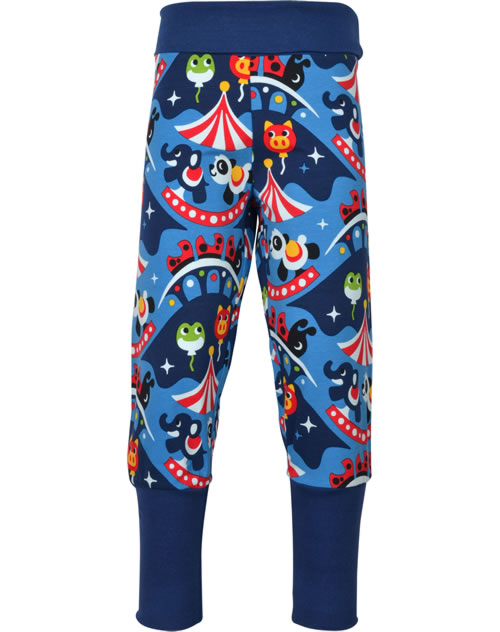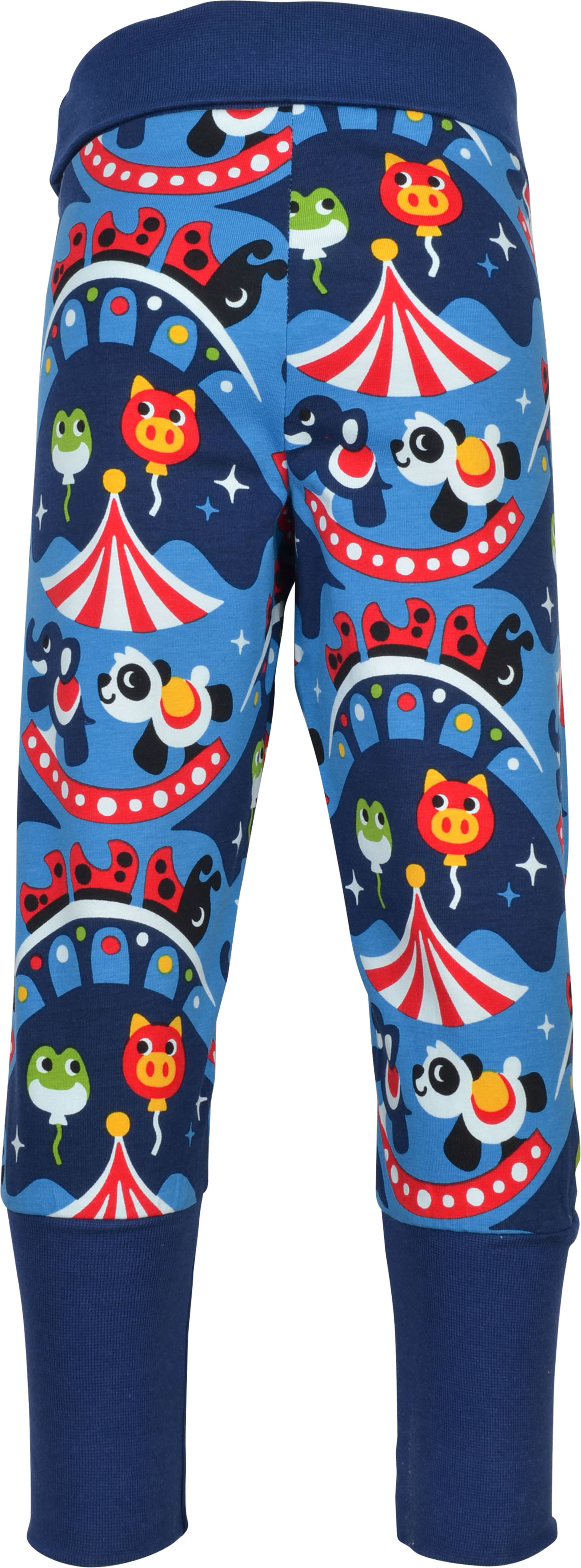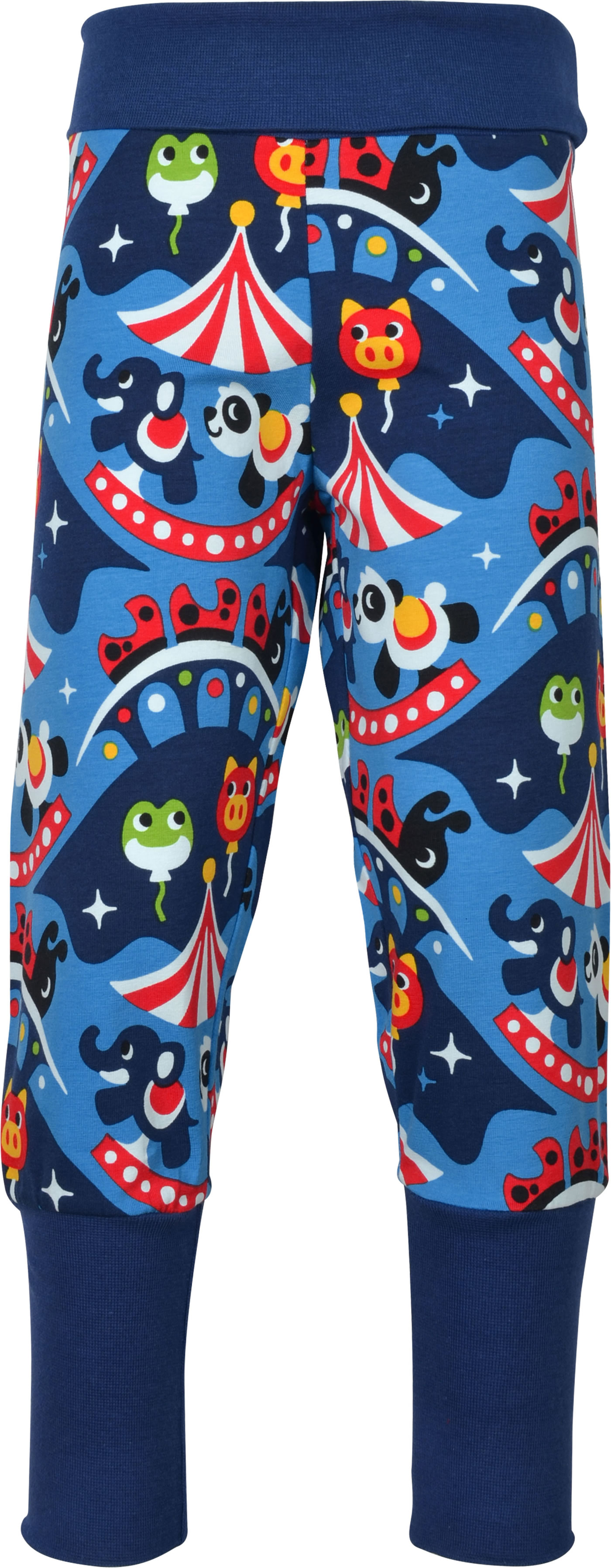 Gemütliche Bund-Hose in blau mit Rummelplatz-Motiven von MAXOMORRA. Das beliebte Kleidungsstück hat einen breiten, weichen Gummibund, der das An- und Ausziehen zum Kinderspiel macht. Das weiche Jersey-Material sorgt für einen hohen Tragekomfort.